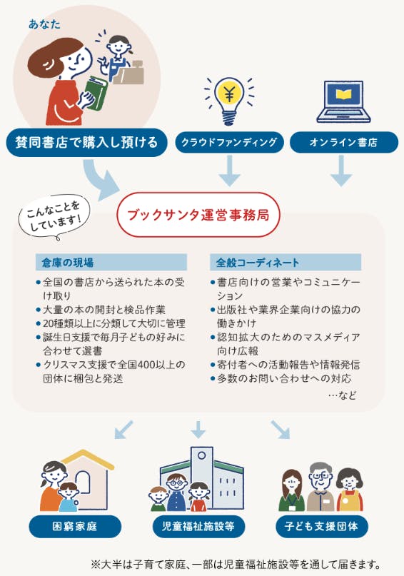 書店で本を贈る応援に加えて、ブックサンタを資金で支える「もう一人のサンタクロース」になっていただけませんか?