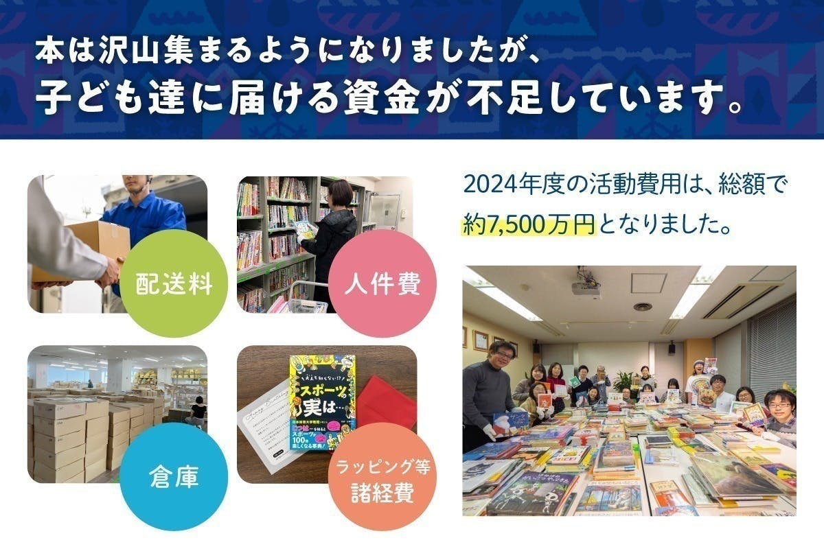 皆さまから寄せられる本の寄付のペースに、活動を支える運営資金が追いついていないのです。