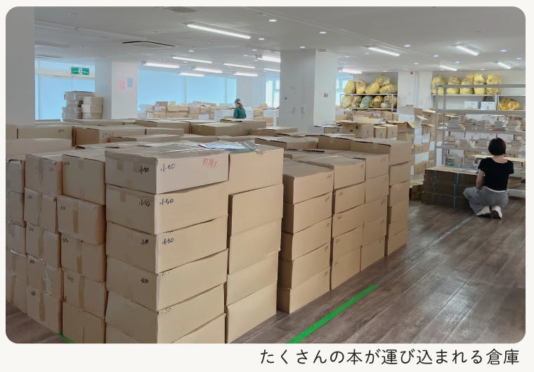 2. 専用倉庫に集め、大量の本の開封と検品作業