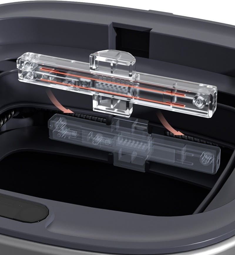 天面と下部の2か所にセンサーを搭載。この“二刀流センサー”により、手をかざしたり足をかざして自動で開閉できます。手が汚れていたり、両手がふさがっていても衛生的に開閉できるのが便利。