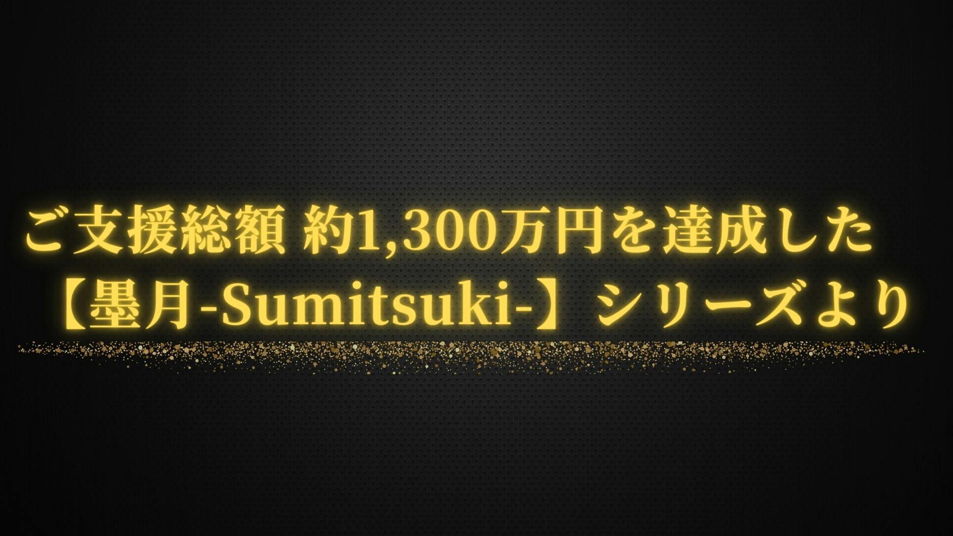前回の【墨月-Sumitsuki-】プロジェクトでは、想像を遥かに超える多くのご支援をいただき、支援総額は合計約1,300万円に達しました。改めまして、心より御礼申し上げます。