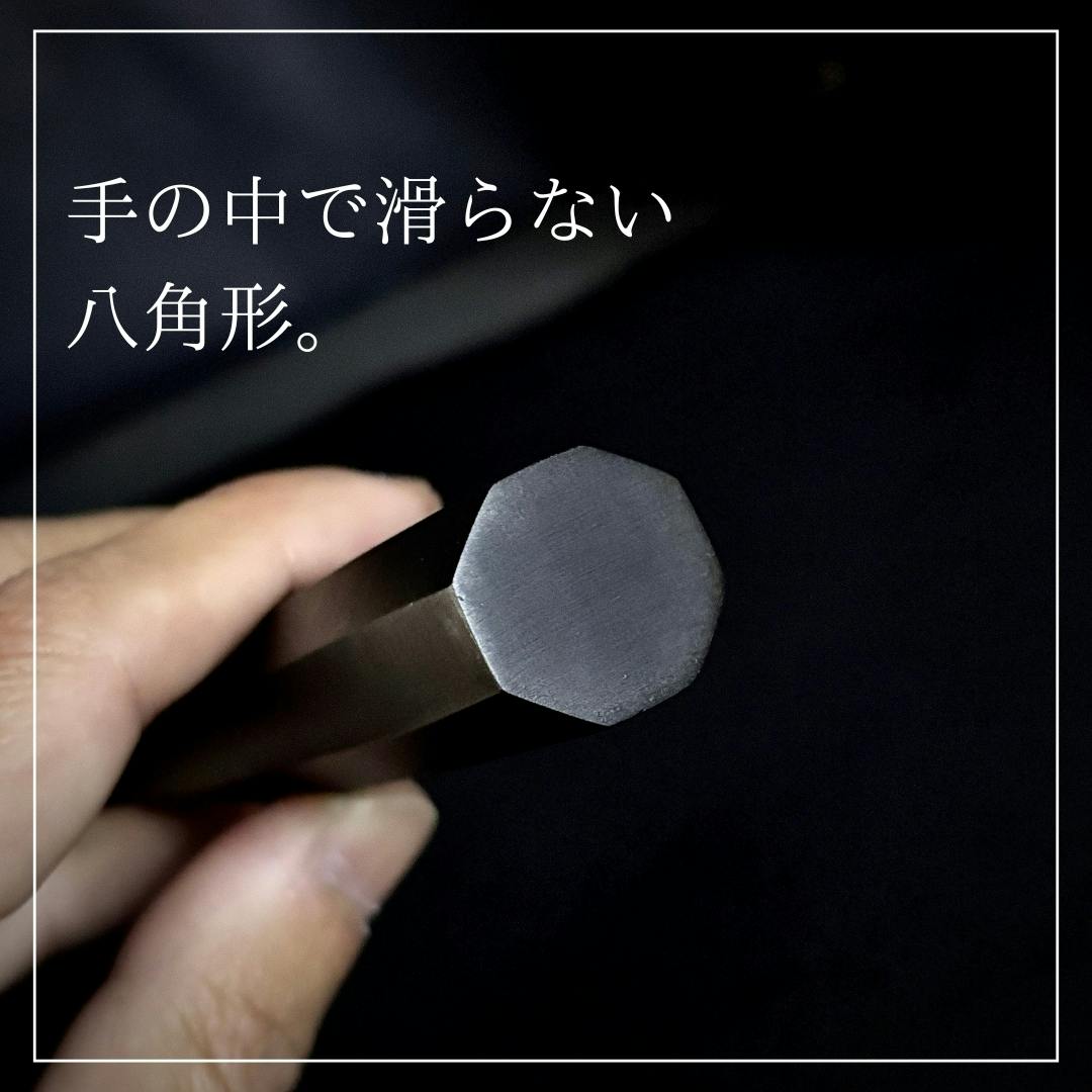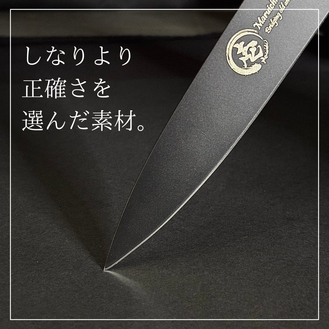 前作「墨月」よりも硬度が高い硬めの素材を採用し、刃先のブレを抑え、直線的で安定したカット感を実現しています。刃持ちも良く、研ぎ澄まされた切れ味が長く続きます。