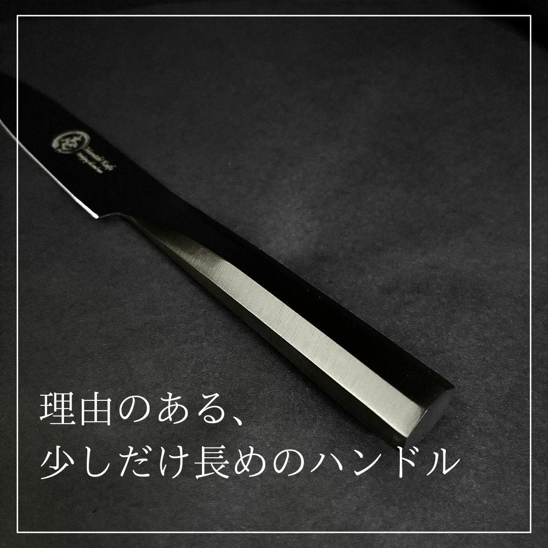 通常のペティナイフより、あえて若干長めに設計したハンドル。