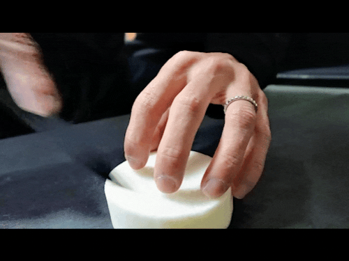 使い方はとてもシンプル。磁石付きの台に包丁を固定し、あとはシャープナーを挟むようにスーッと転がすだけ。