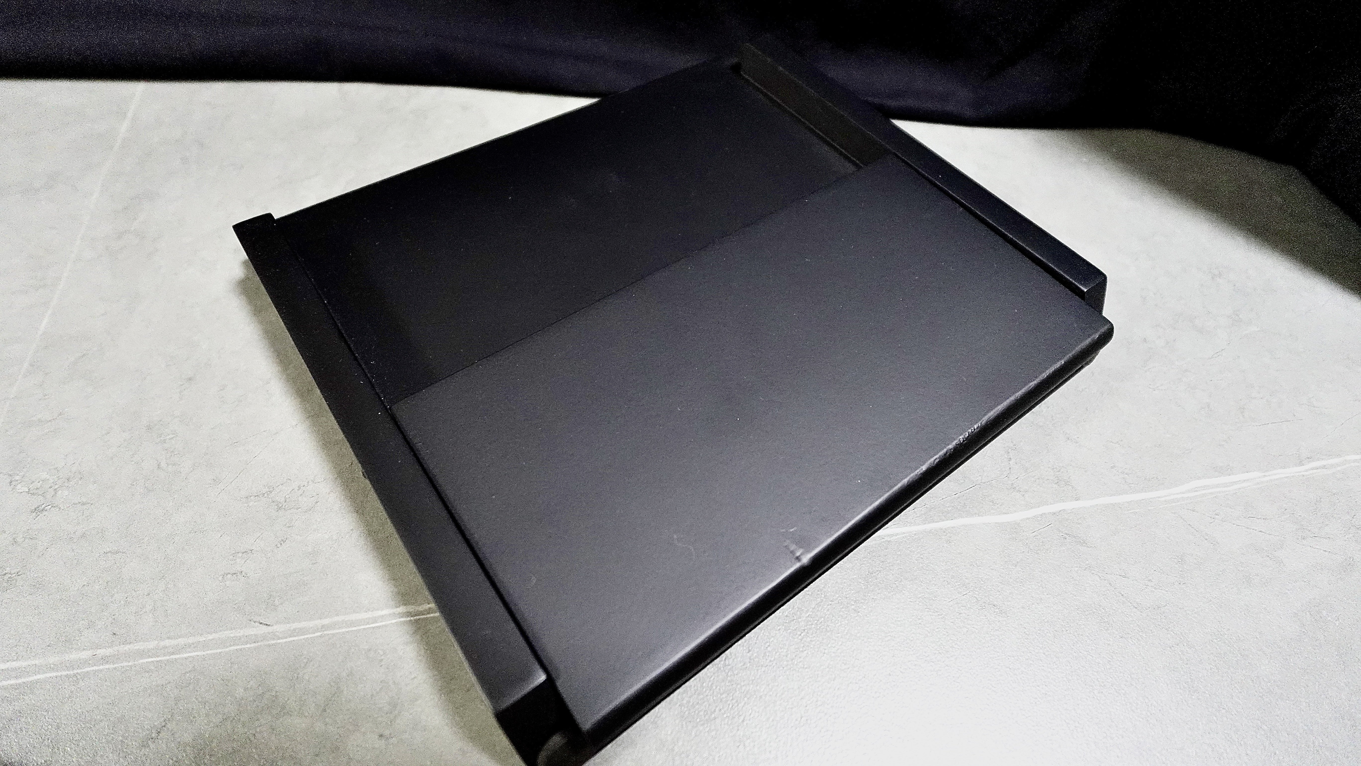 また、背面のスタンド脚は折りたたみ式。使わないときにはコンパクトに収納でき、傷が付きにくい素材で移動も簡単です。