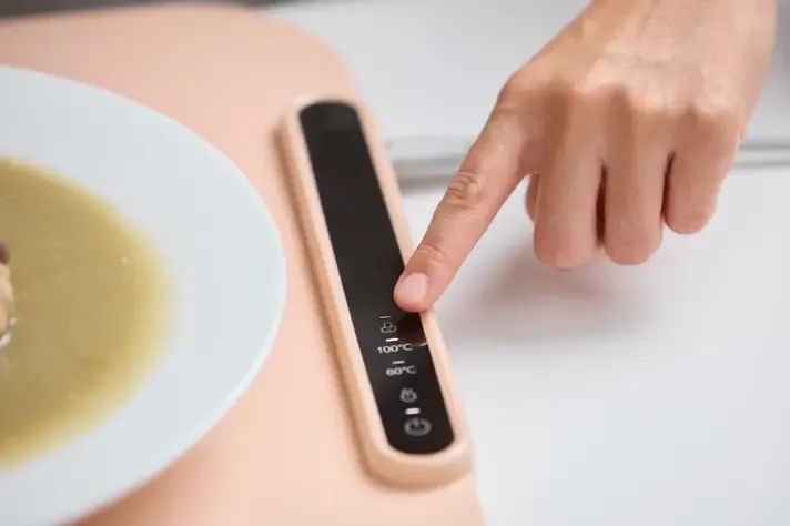 温度ボタンを押すごとに、60℃/100℃の2段階で切り替えが可能。お料理やシーンに合わせて、ちょうどよい温かさに調整できます。