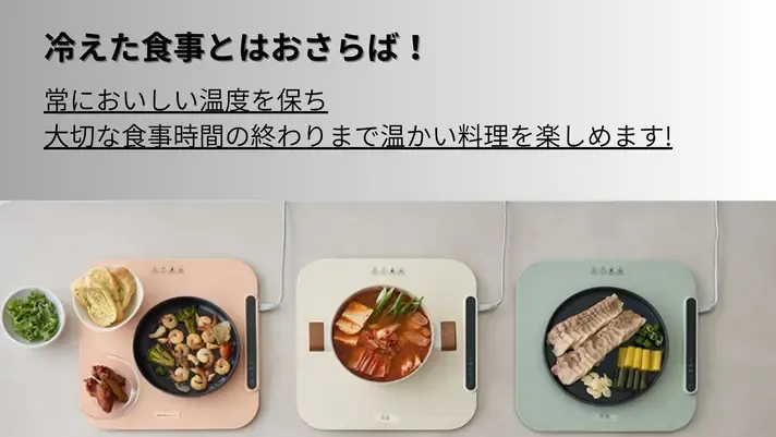 「子どもがゆっくり食べるから料理が冷める」「家族と一緒に食卓を囲みたいけど、温め直しで席を立つことが多い」「鍋パーティーも、後半はぬるくなってしまう」そんな日常の“ちょっとした不便”に、静かに寄り添う存在です。