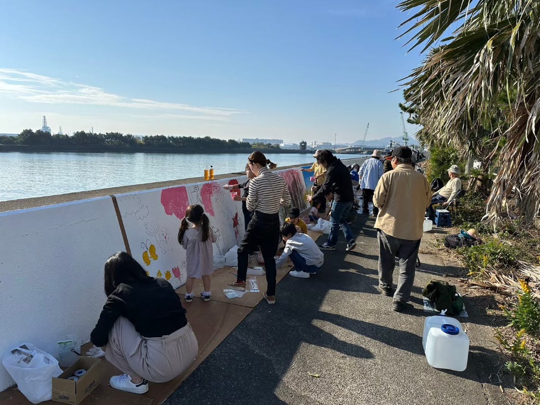 • 4日、平島子どもセンター・今津子どもセンター・なかがわ保育園・平島小学校・今津小学校・新野東小学校の子どもたちが、9日の「壁画再創造」を前に絵を描きに来てくれました!なんと100人を超える子どもたち!その迫力とエネルギーは圧巻でした。友だちや先生と一緒に思い思いに筆を走らせ、お弁当を食べながら笑顔あふれる時間に見ているこちらも温かい気持ちでいっぱいになりました。少しだけお話もさせていただきましたが、今日のこのひとときが、子どもたちの心に“ふるさとの1ページ”として残ってくれたら嬉しいです!空気が澄み、鳴門の橋もくっきり見える最高の天気の中、TSUNAGU STREETにまた素晴らしい作品が生まれました!ぜひ現地でご覧ください。さて、いよいよ本番の9日!お天気が少し心配ですが…去年も90%の降水確率を跳ね返しました。今年も全国の晴れ男・晴れ女の皆さま、ぜひお力をお貸しください! もっと見る