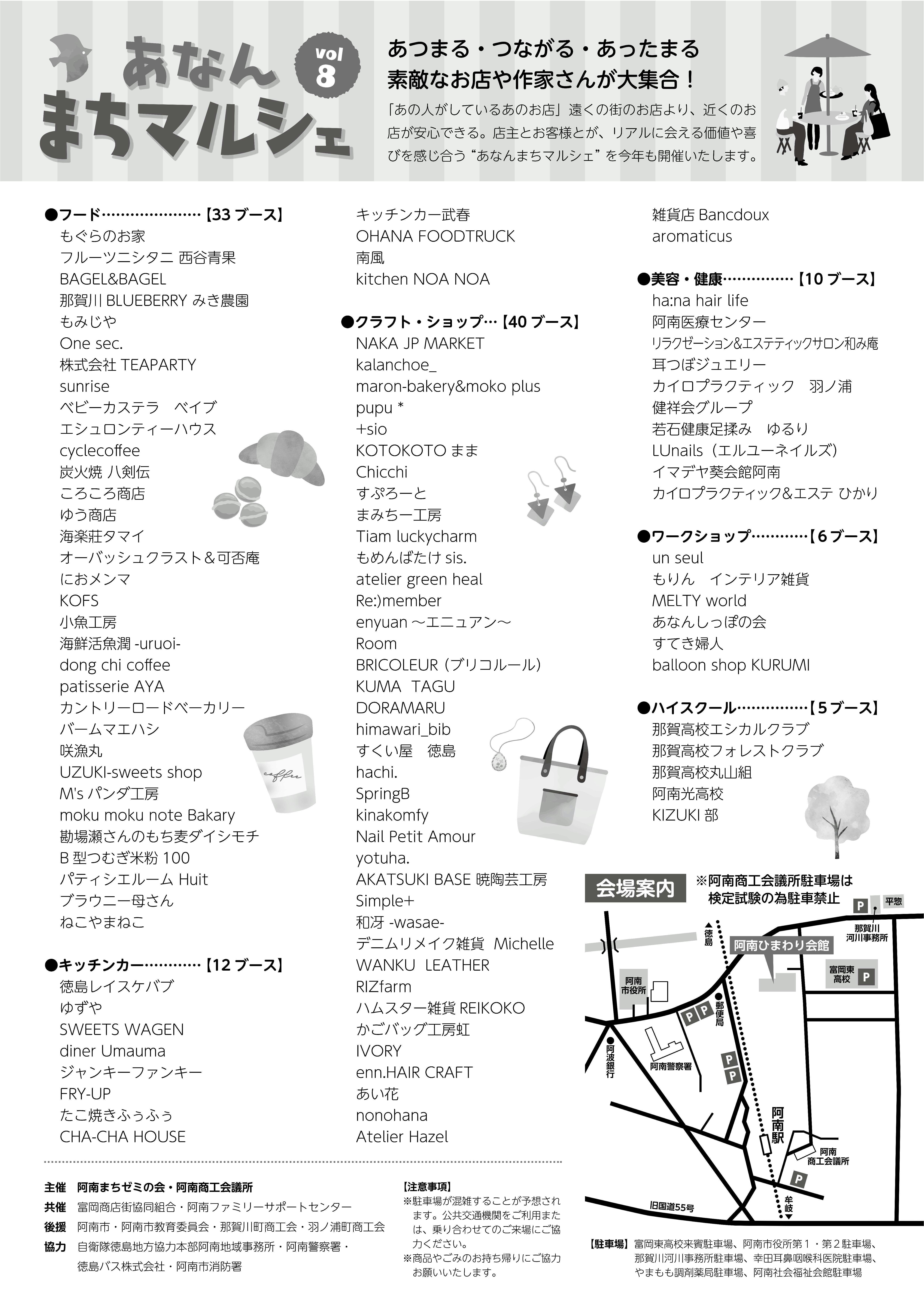 • 雨天順延でご迷惑をおかけしました。ご参加いただく皆様には日程の再調整までしていただき、本当にありがとうございます。16日(日)は壁画再創造と同じ時間になりますが、10時~15時で阿南ひまわり会館にて「あなんまちマルシェ Vol.8」もやっています!町内外の“おいしい!”“かわいい!”がギュッと集まるイベントです。まちマルシェから壁画へ、壁画からまちマルシェへ。どっちも楽しめる日なので、ぜひ阿南を満喫してくださいね。 もっと見る