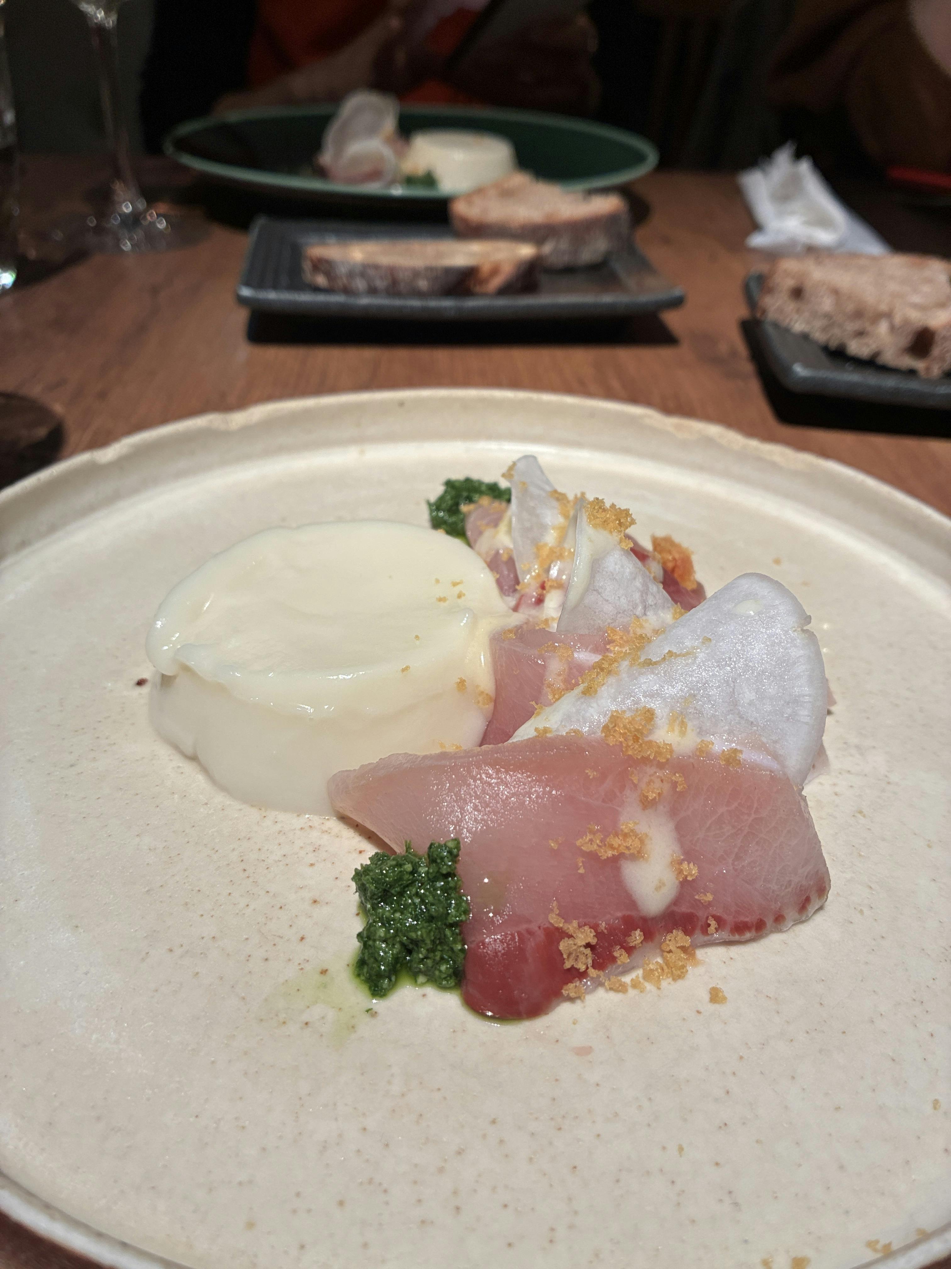 千葉県浅野さんのフルーツカブに富山のブリのマリネ カブのパンナコッタとカブの葉ソース