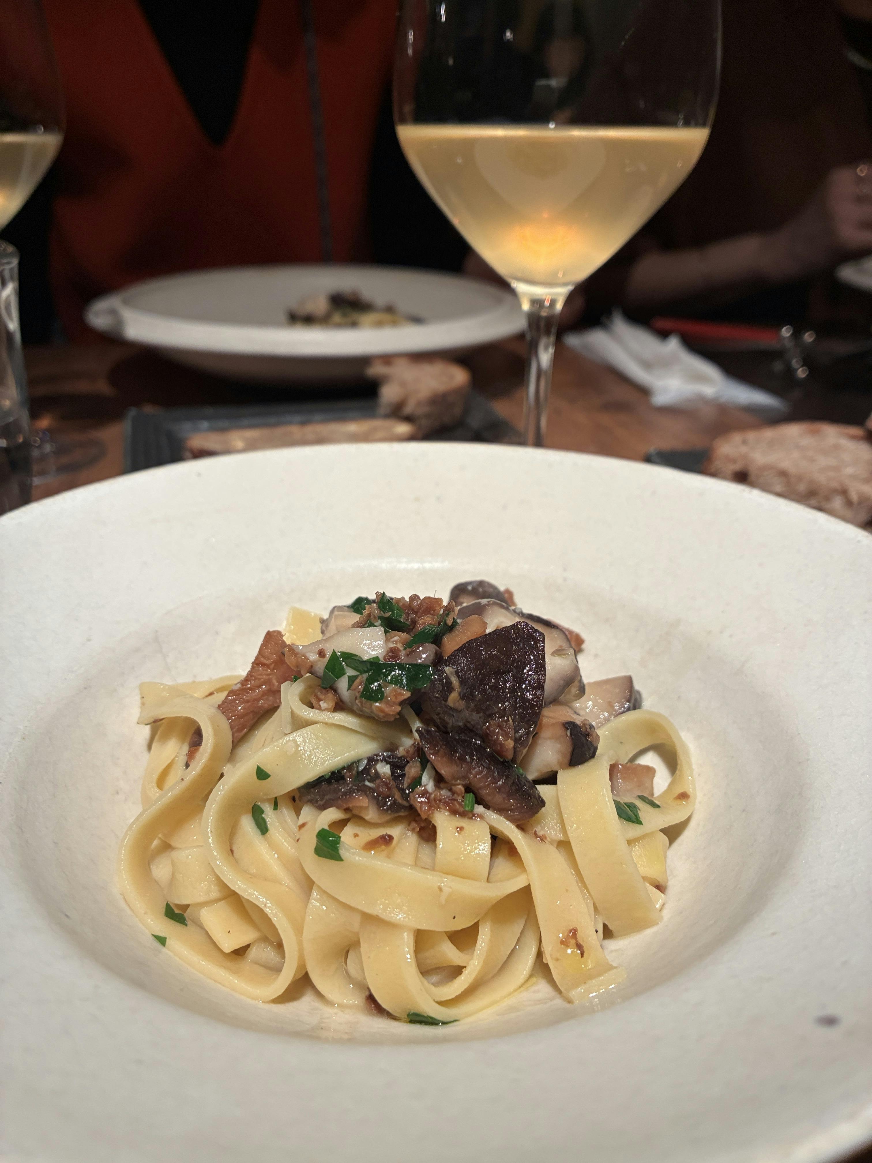 なんと、ウチの深蒸し茶が隠し味で使われました。タリアテッレに続き、シイタケも!