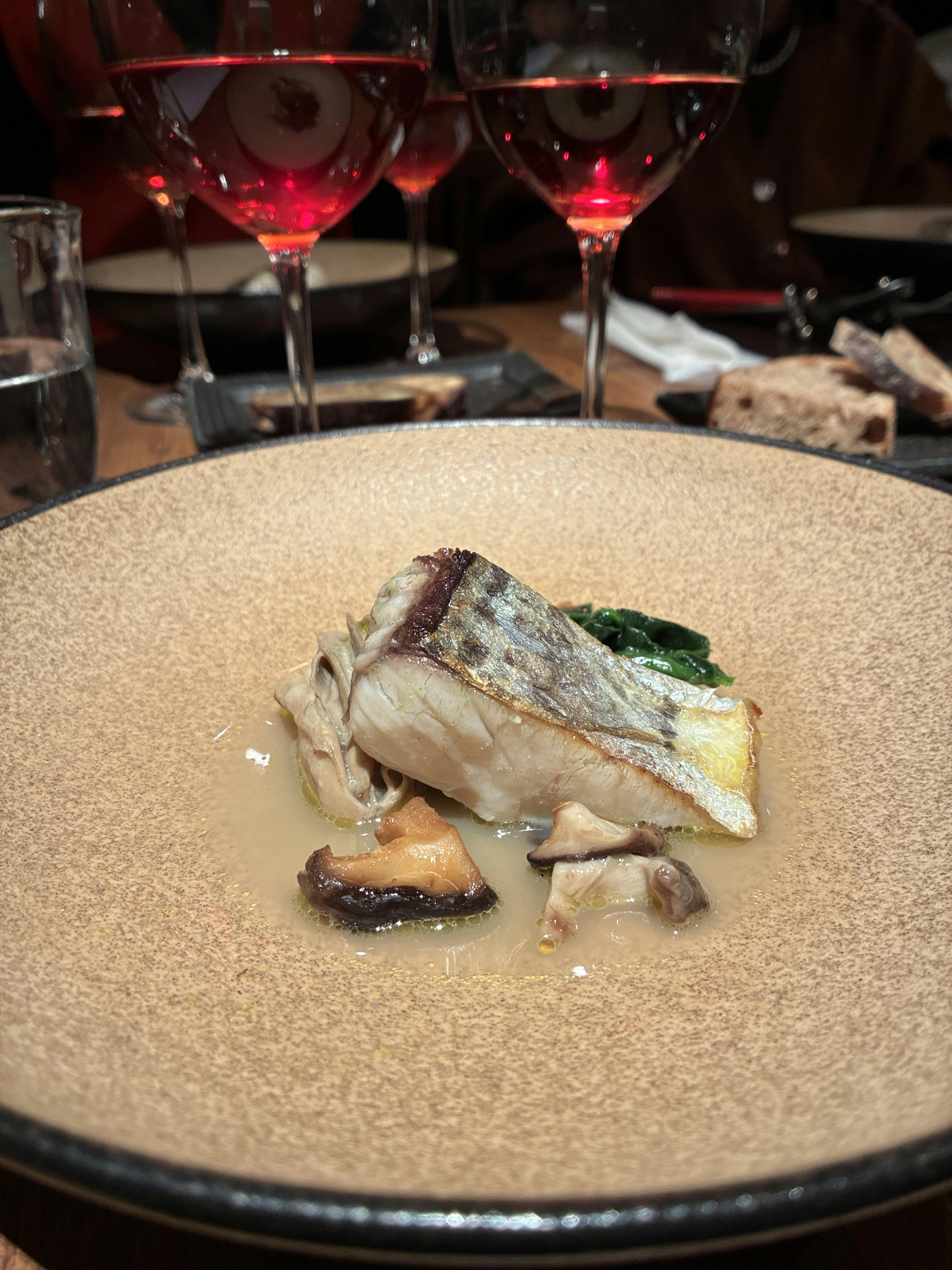 鰆のアクアパッツァ 原木しいたけ 牡蠣と深蒸し茶