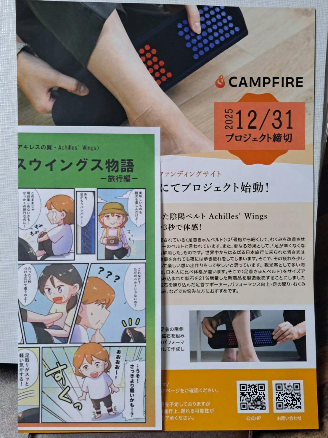 2025/12/23 13:54少し早いですが★★★メリークリスマス★★★現在、《達成率86%》みなさまのご支援に感謝いたします。なっ、なんと、嬉しいことに残りの14%分をまとめて支援したい方が現れました。クリスマスのころには、100%達成します。(パチパチ)先行発売中の『アキレスウィング』には、こんなお声も★体験会で足がふわふわになるのを体感したので友達に進めたいです。★★足のお悩みを持った方がたくさんいますので少しでも助けてあげたいです!★★★割引率が大きいものは、人を喜ばせ、チョットしたお小遣い稼ぎになりそう!★★★★思い切って、家族5人分支援しちゃいました。とても楽しみです。たった3秒で“ふっと軽くなる”。むくみ・だるさ・疲れをスッと軽減し、毎日を快適にしてくれる進化系サポートベルトです★ジャンプ力アップで、スポーツ界にも影響ありそうです。★12月31日まで!CAMPFIREにて【少しでもお得に】先行購入できます!この機会をぜひお見逃しなく!!▼プロジェクトはこちらcamp-fire.jp/projects/884671/view もっと見る