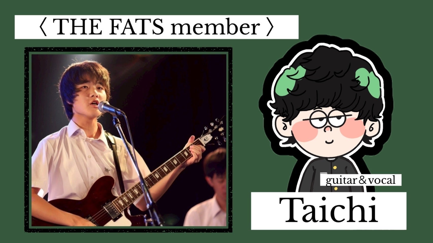 僕たちTHE FATSは、高校生というまだまだ未熟な存在ですが、音楽に対する情熱だけは誰にも負けません。ビートルズやオアシスから受け継いだロックの魂を、僕たちなりに表現して、多くの人に届けたいのです。