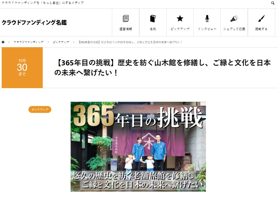 こちらのサイトでは、山木館の365年の歴史や修繕の必要性、若い世代向けの取り組み(ReFaルームなど)をピックアップしていただいています。伝統を守りながら新しい挑戦を続ける私たちのストーリーを、見やすくまとめていただき、大変光栄です。