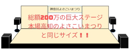 このプロジェクトは、神奈川よさこいまつりの会場に、30m✕20m(高さ60cm)の巨大特設ステージを設営することです。このステージは神奈川県内のイベントでも最大級のもので、観る方、踊る方を圧倒し、参加者や観客が一体となって楽しめる場を提供します。