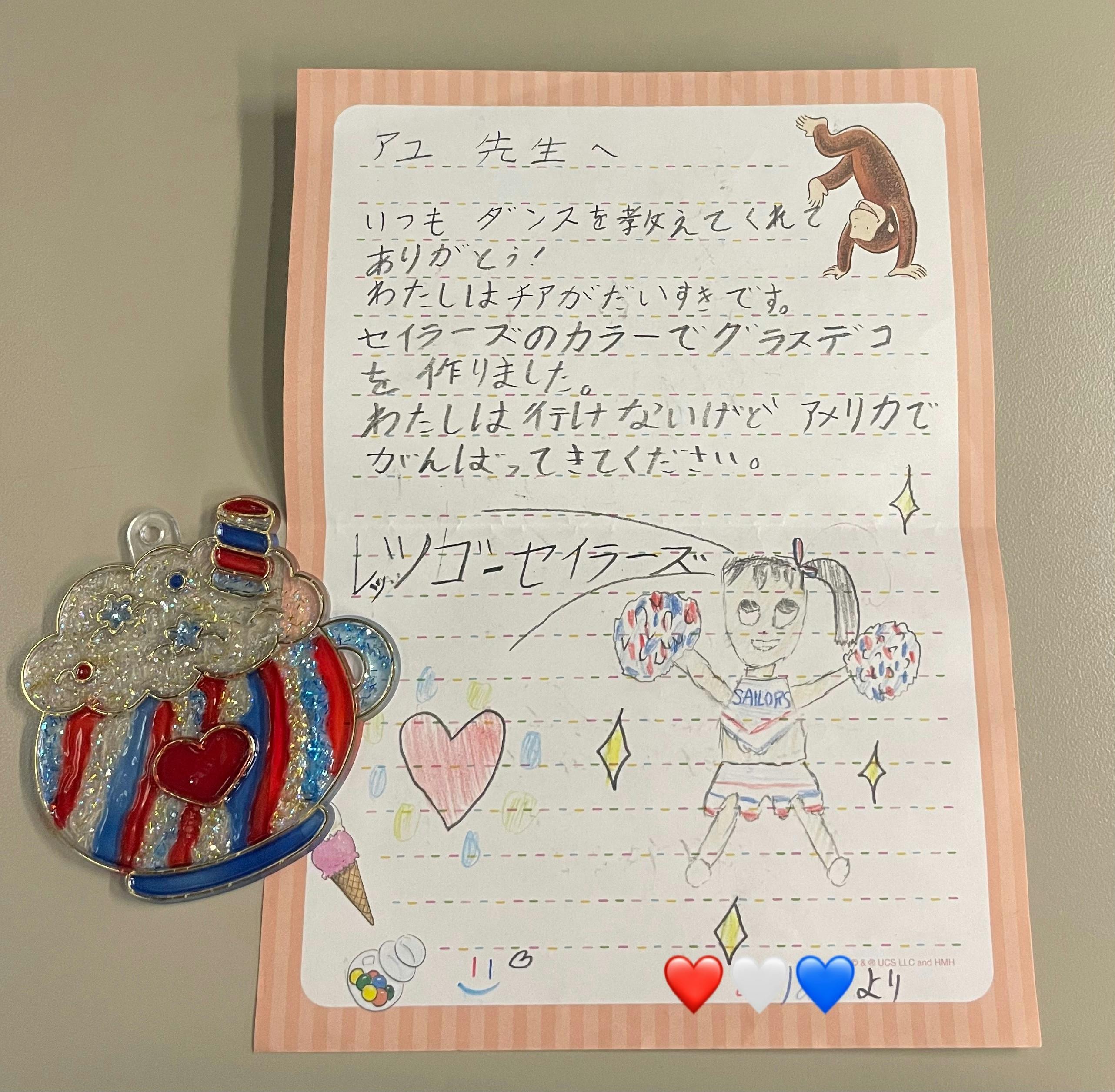 目標金額の60%を達成しました!!スクール保護者様からもたくさんのご支援を賜り本当に本当に感謝の気持ちでいっぱいです。心より深く御礼申し上げます。あたたかい励ましのコメントや直接かけて頂くお言葉に、実は毎回感涙しそうで堪えるのに必死でいます。昨日は宮原スクールの生徒様からとっても素敵なお手紙とプレゼントをいただいたのでご紹介させてください。一生懸命に考えながら作成してくれたプレゼントと心のこもったお手紙、気持ちがとてもとても嬉しかったです☆気にかけてくれていることを知ってまた感動!涙しました。プロジェクト遂行に向けて、そして最高のパフォーマンスにすべく引き続き尽力致します!!あっという間に11月となりますね。インフルエンザが流行っているのでお気をつけください。
