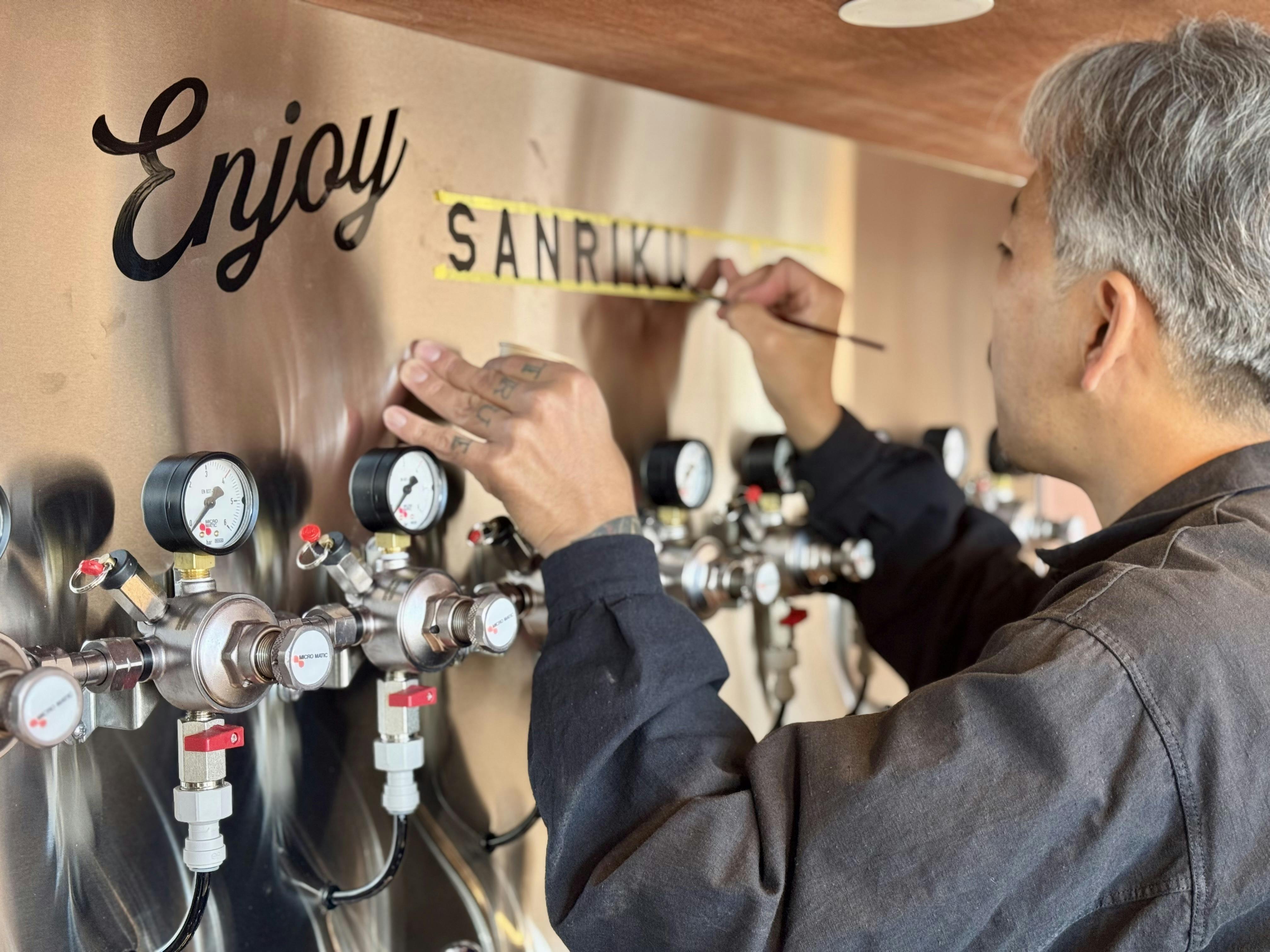 壁面にはグラフィックとタイポグラフィが施され、空間の表情がぐっと豊かに。ブルワリーとタップルームに、少しずつ命が吹き込まれていくようです。