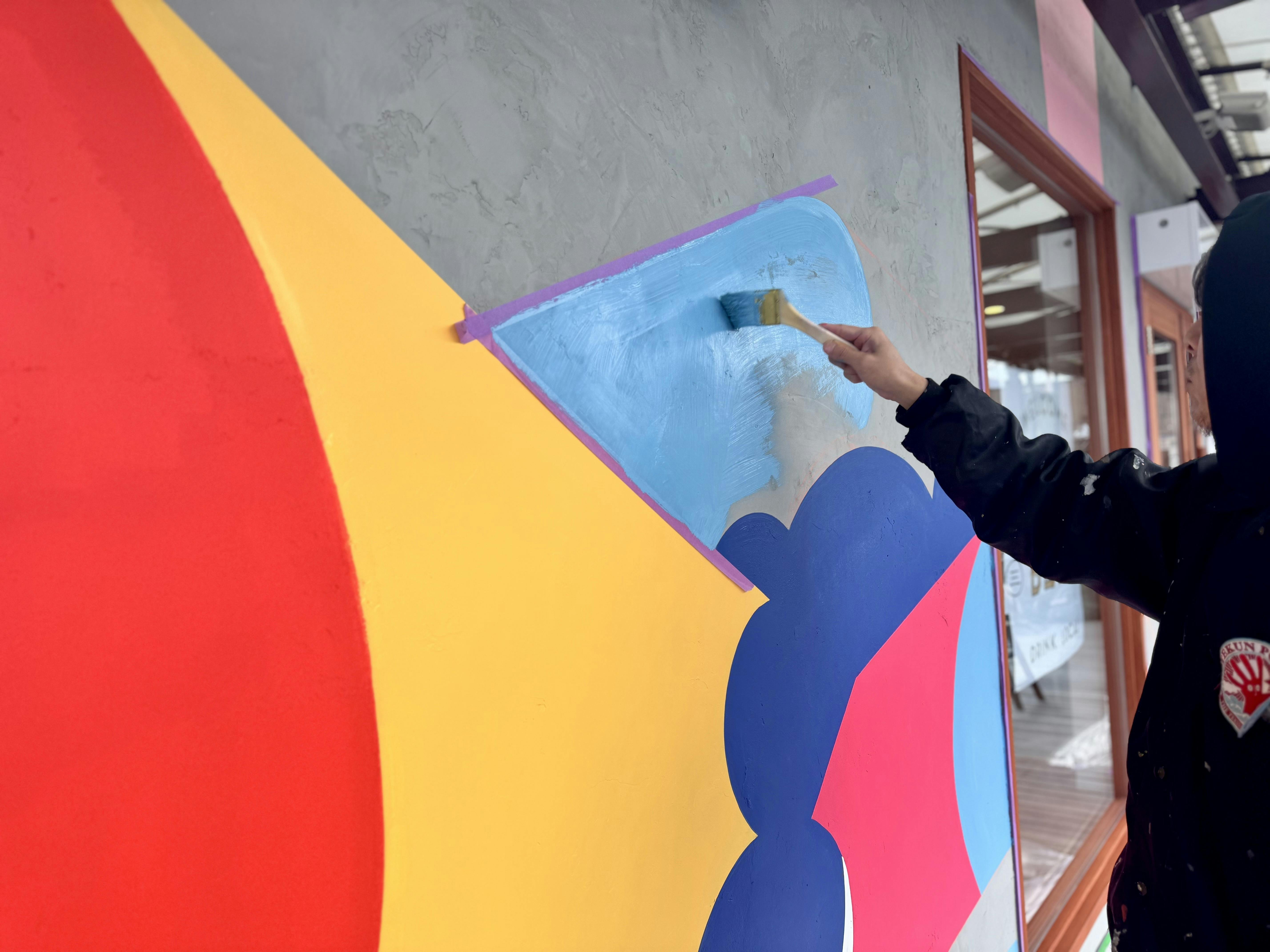 今日から、ブルワリーとタップルームのアートワークとペイントが始まりました。