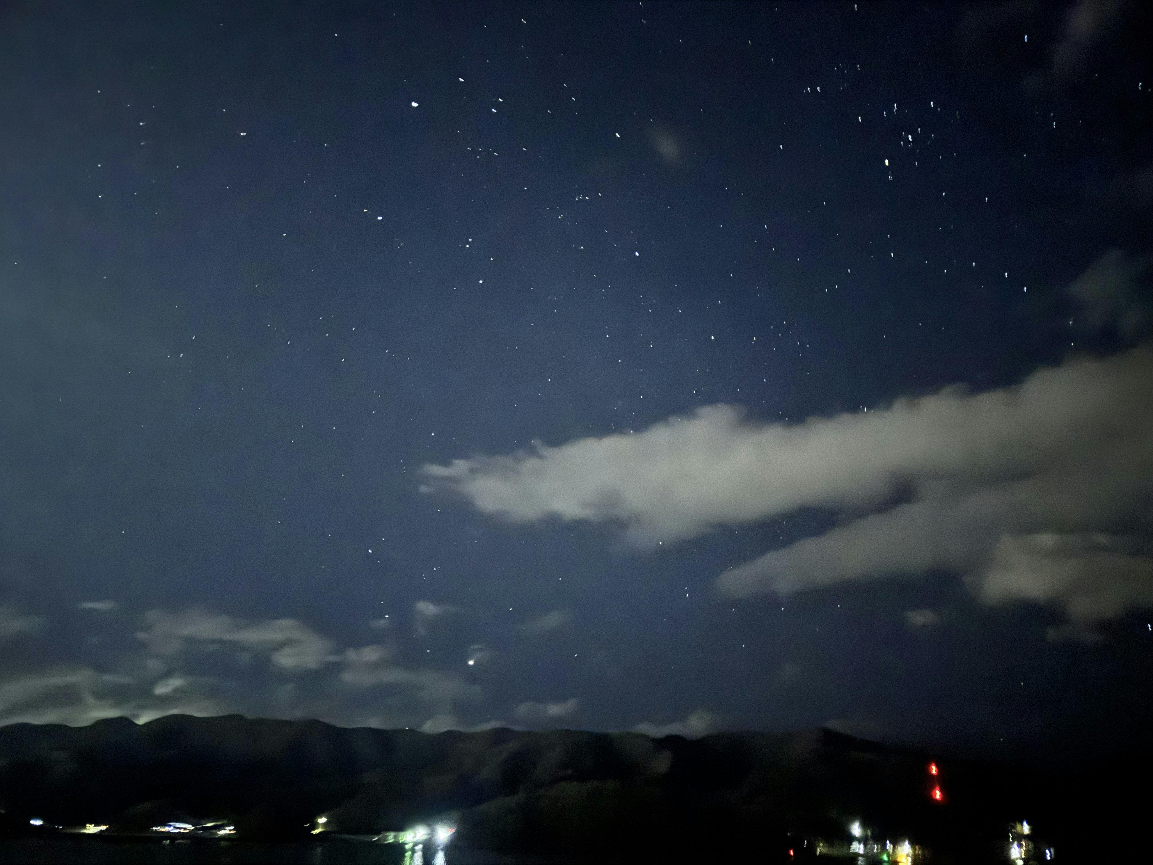夕食を終えてメンバーを大船渡のナイトクルージングにご案内。船ではなく車で防潮堤の外までドライブ。雨上がりのせいか、空気が澄んでて夜空に浮かぶ星と、海面に映る街灯の光が印象的でした。メンバーも新しいインスピレーションが沸いたようでした。