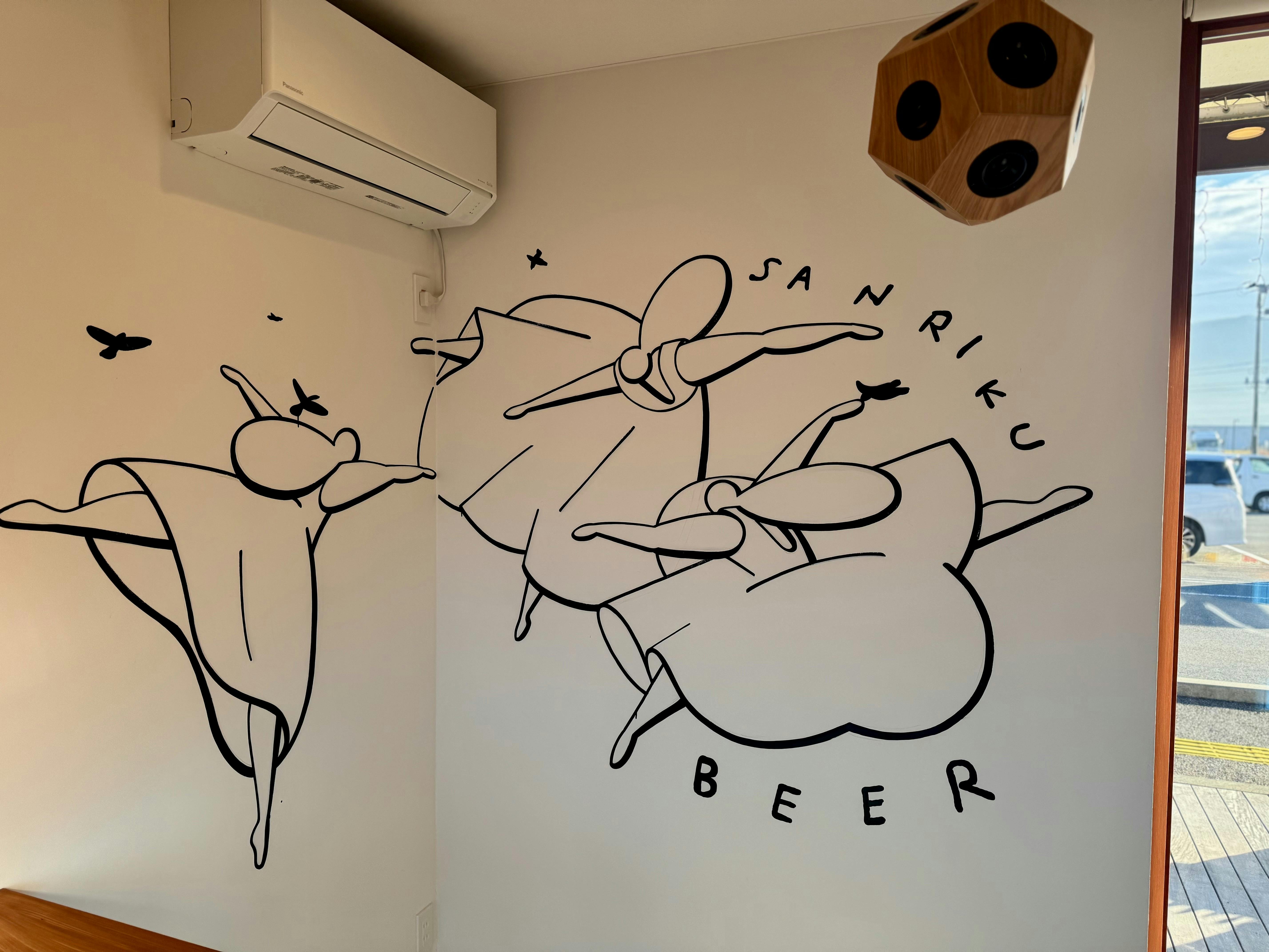 背中のイラストは、アーティスト 鷲尾友公さん がこのタップルームのために描き下ろしてくださった作品です。
