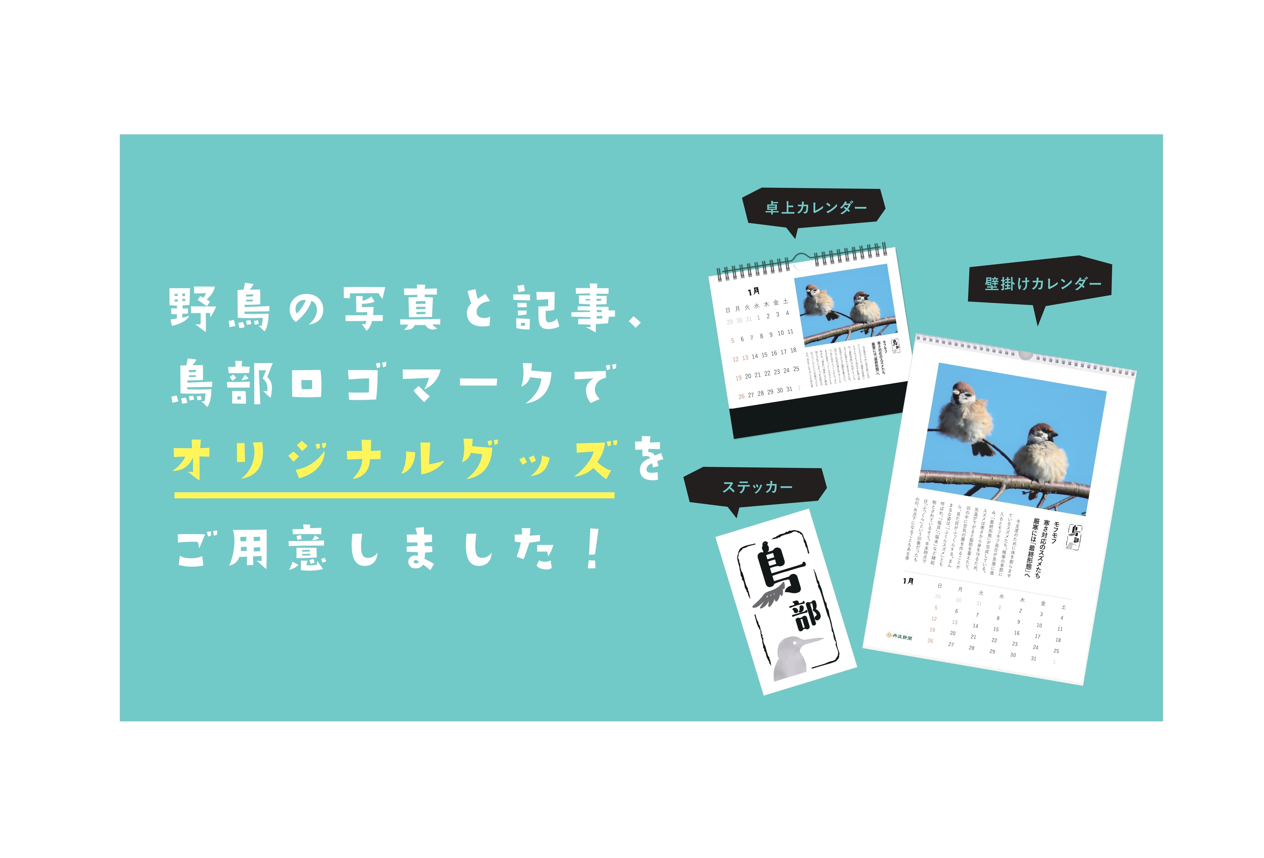 今年も温かいご支援に対するお礼として、また、皆さまと愛らしい鳥たちの姿を共有することを目的に、これまで鳥部員が撮影してきた野鳥写真と記事を使ったグッズなどを用意させていただきました。