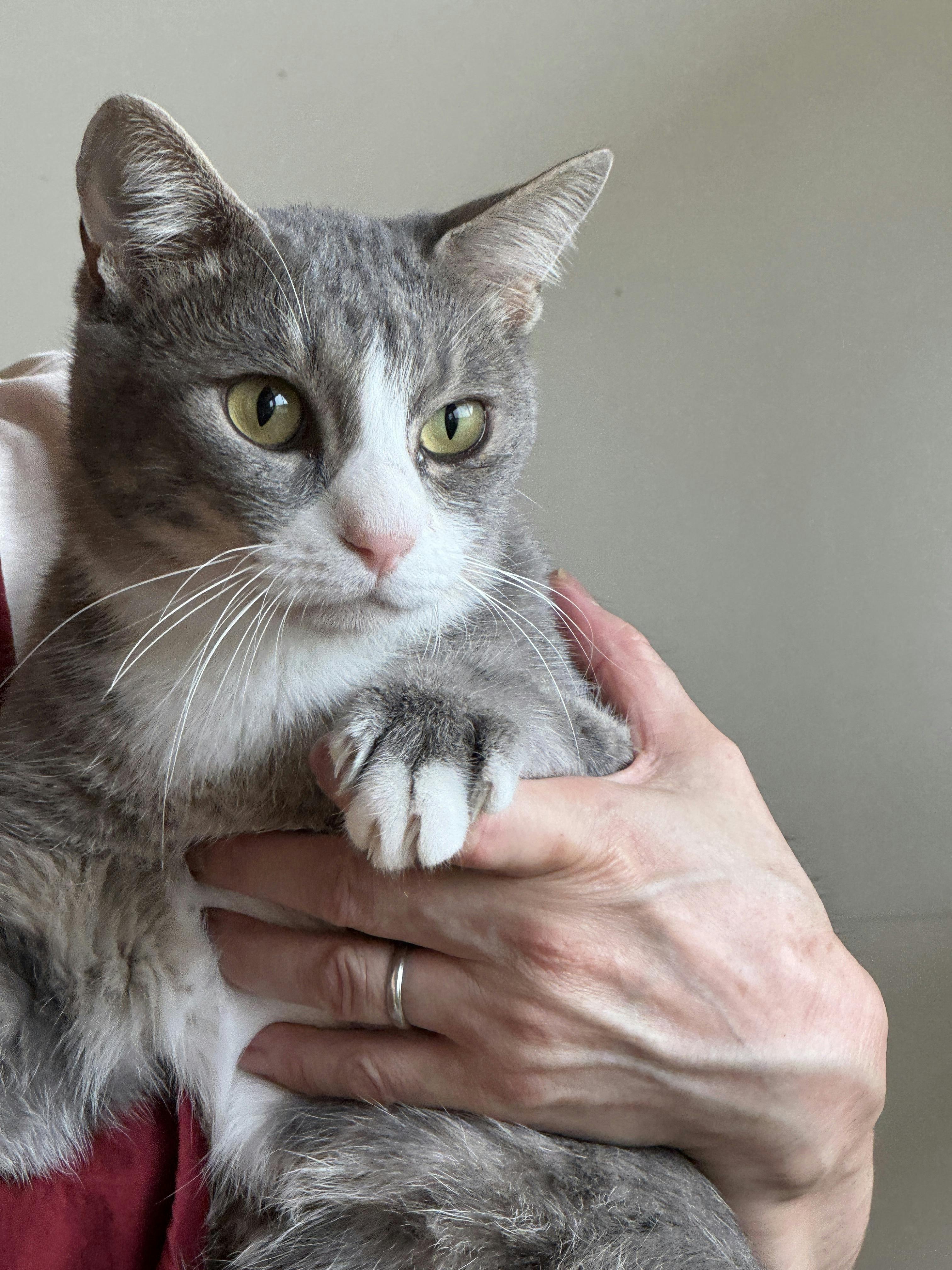 ハチワレグレーの美人でおとなしい男の子。