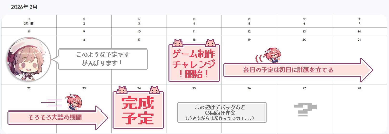 (なので本チャレンジによってメインプロジェクトが1週間遅れる、みたいなことはないようにします)