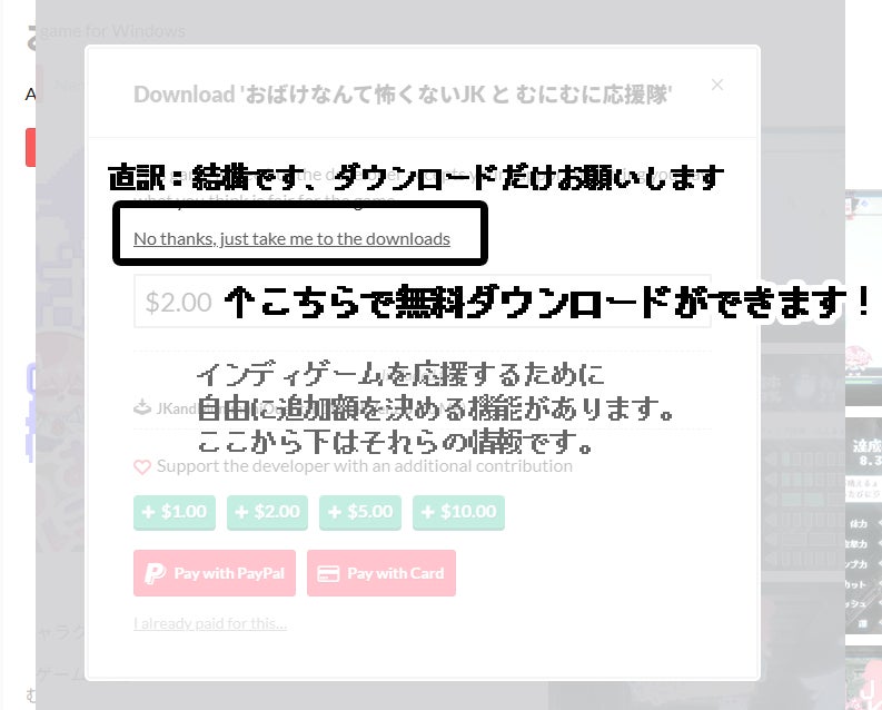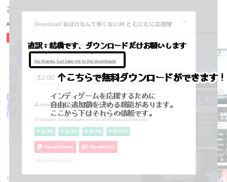 ▼2$と出ますが、これは支援で任意の金額を追加できる画面になります。