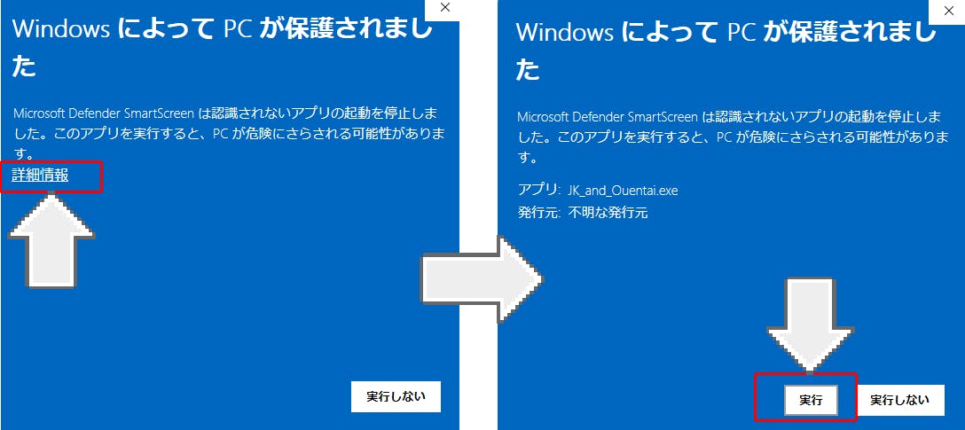 *「WindowsによってPCが保護されました」と表示されるケースがあります。