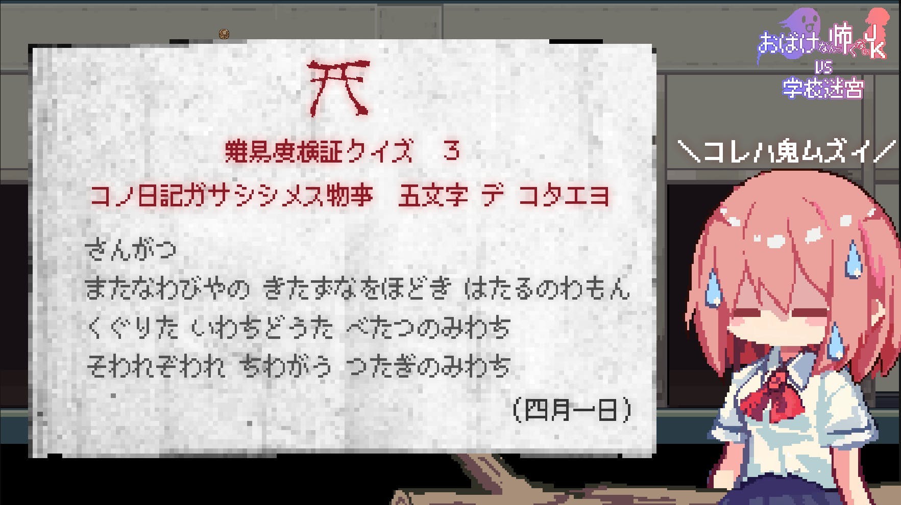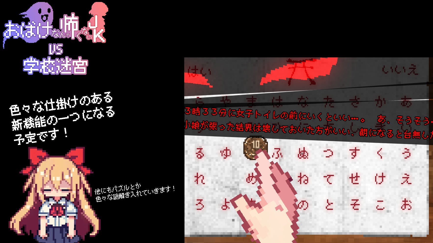 また、ゲーム中のロッカーなどからこっくりさんからの挑戦状が見つかることがあります。
