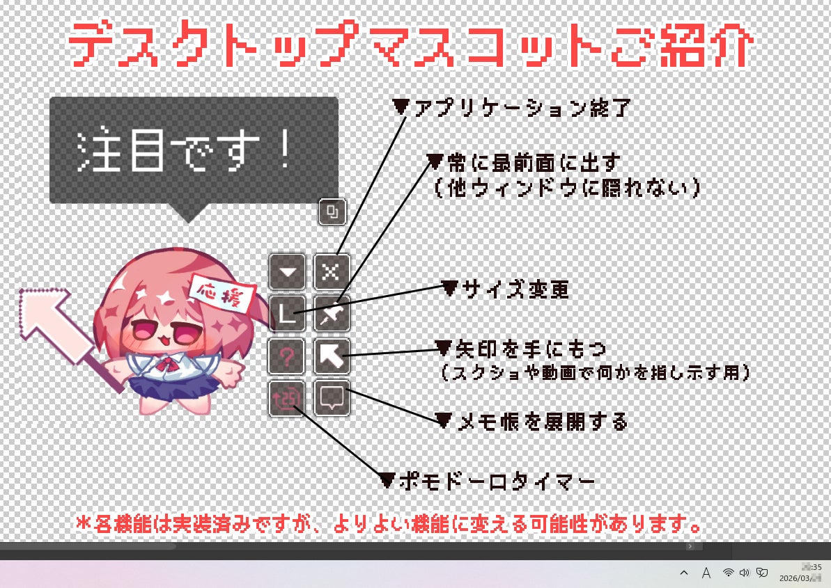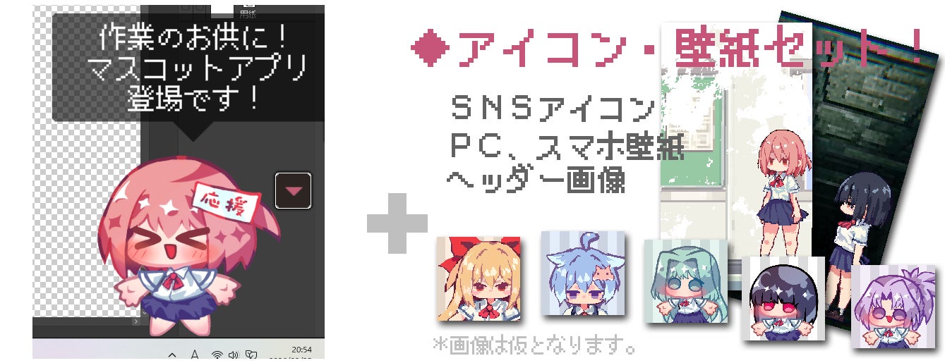 デスクトップにちびきゃらが登場するミニアプリ