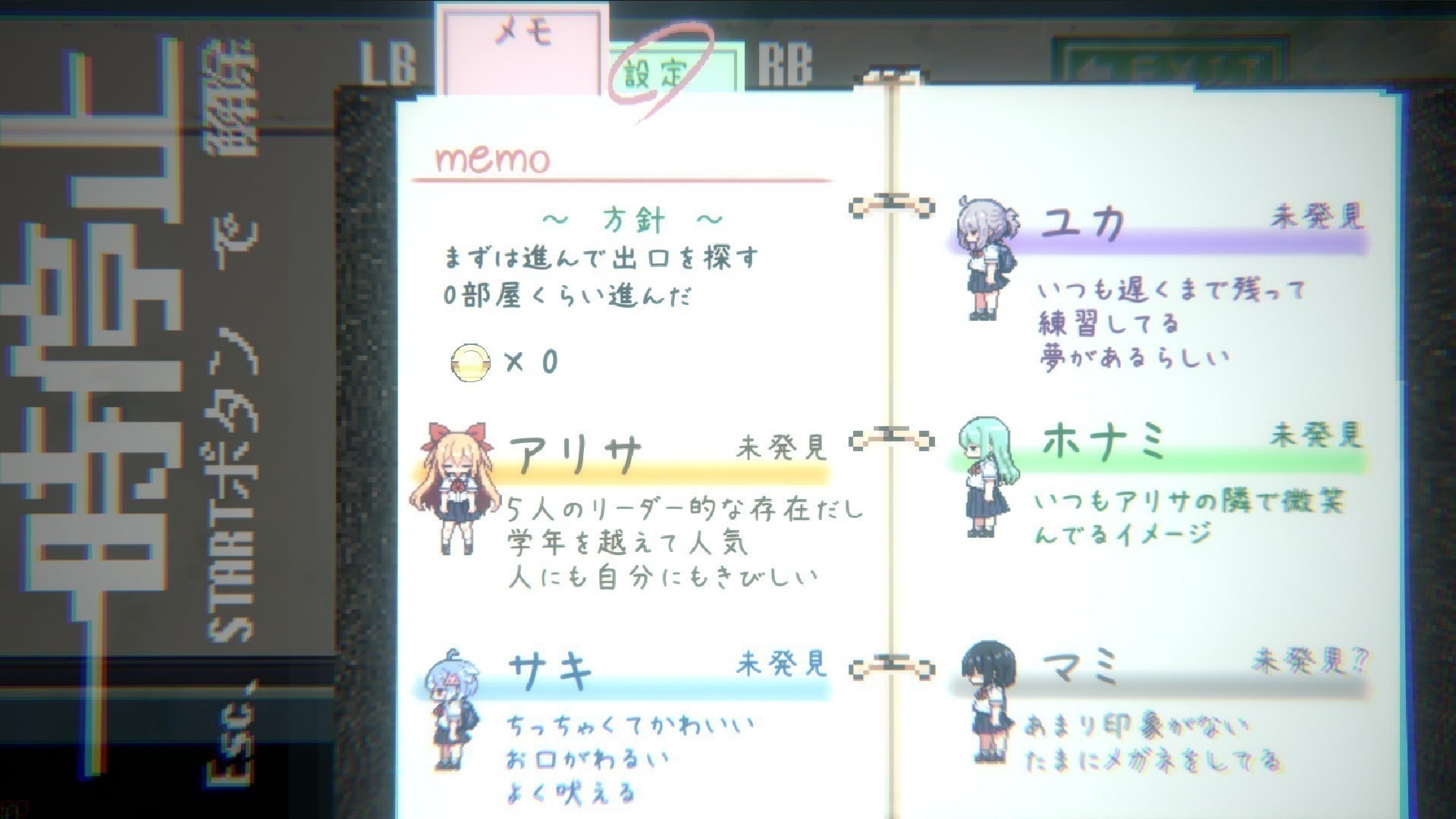 エンディングリストやメニュー画面での登場人物詳細などの周辺機能の実装。