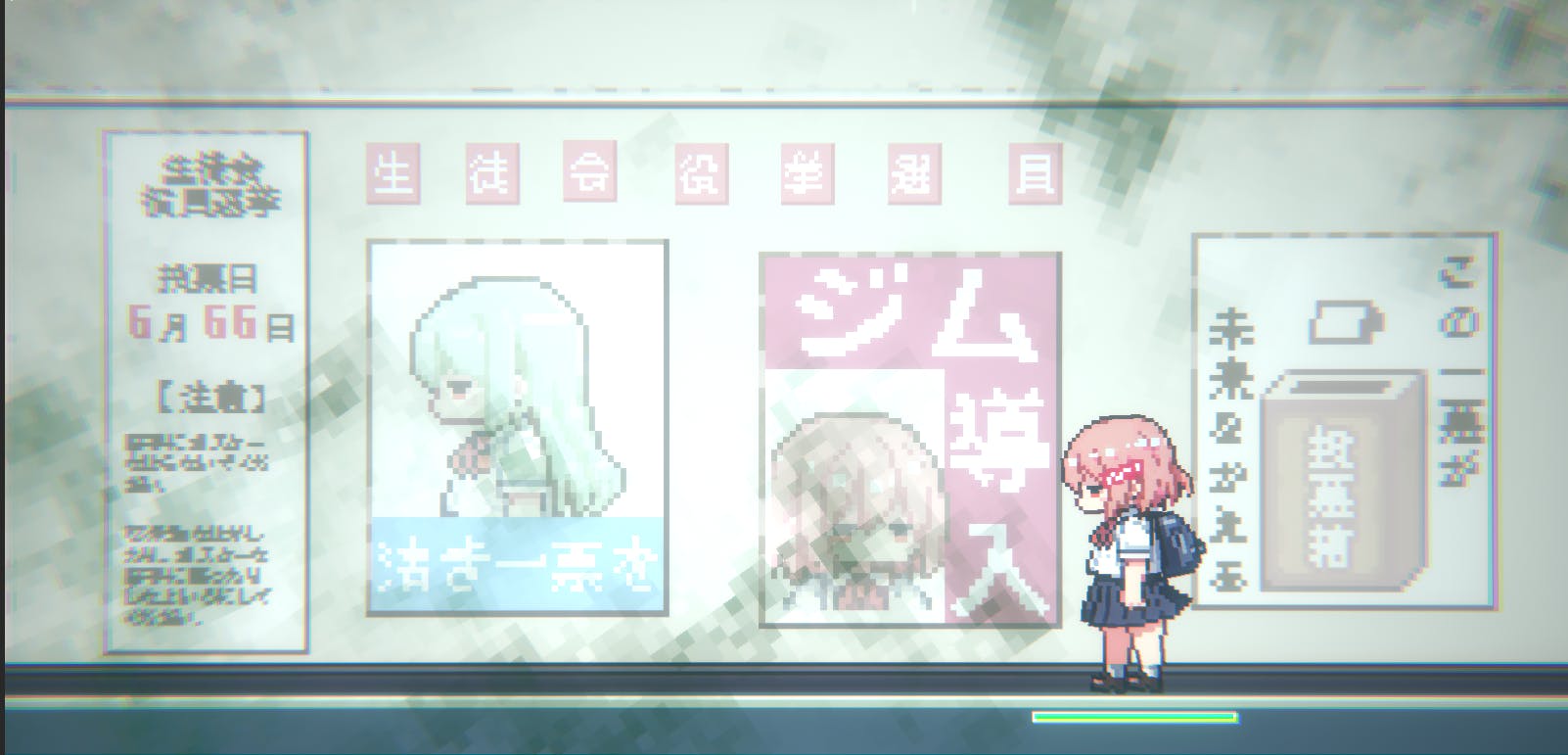 完成版では、時空が歪んだ学校に「踏切」や「神社」といった様々なシチュエーションの