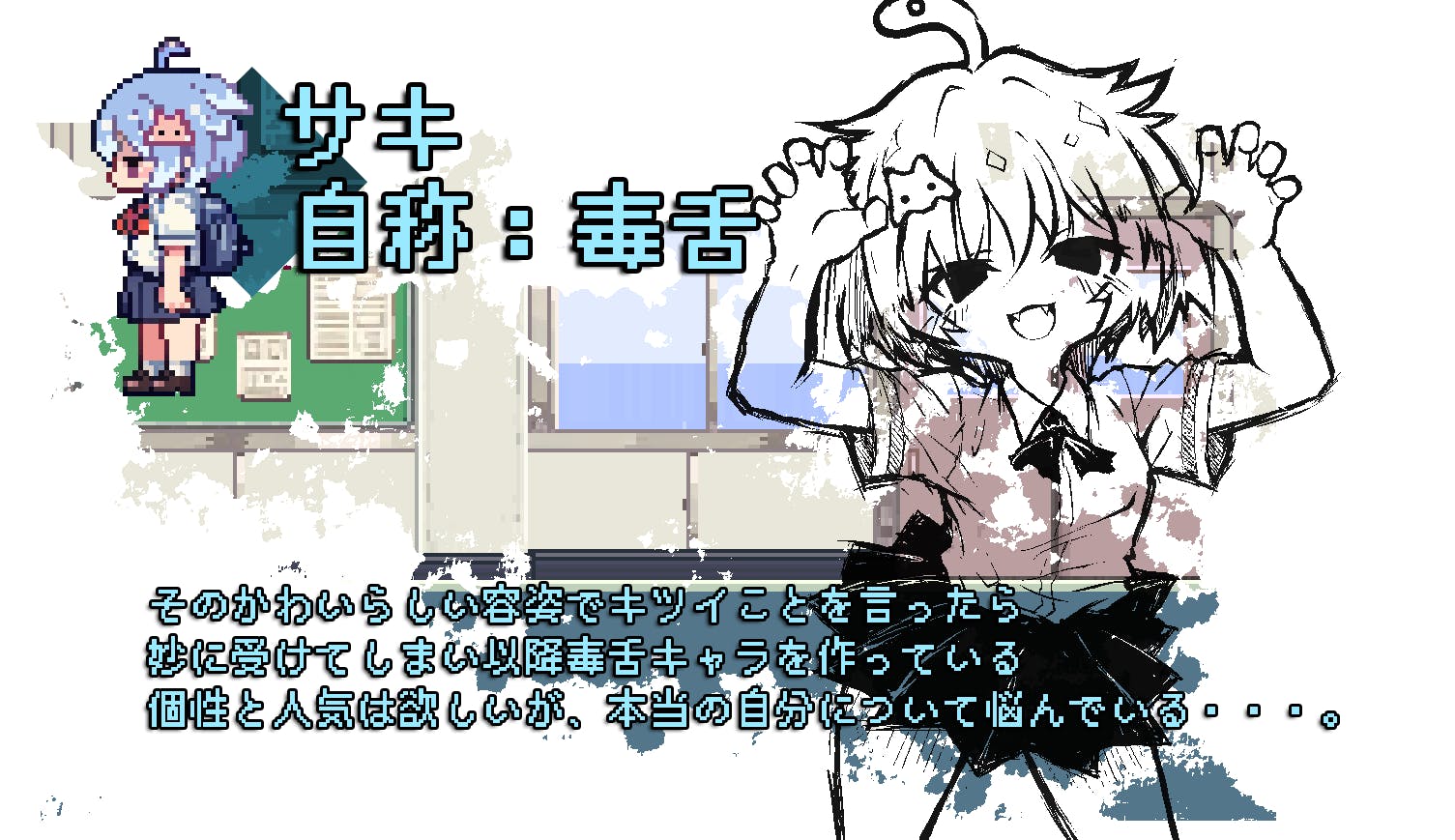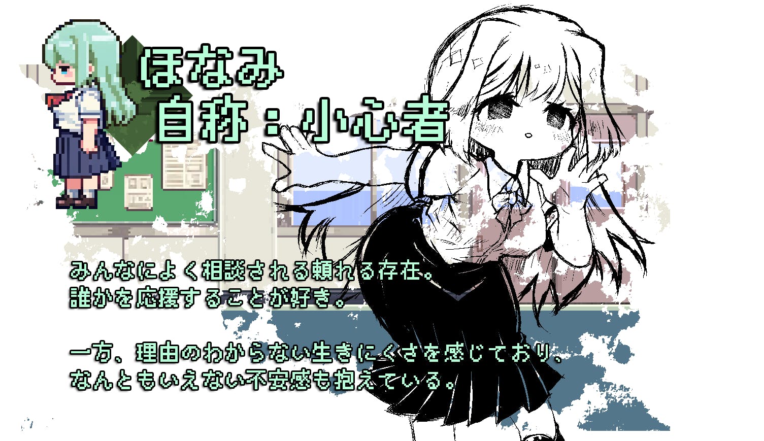 ゲーム中、様々なキャラクターと出会います。彼女たちとどのように交流したかでエンディングが分岐します。プロトタイプに登場するキャラクターを一部紹介します。