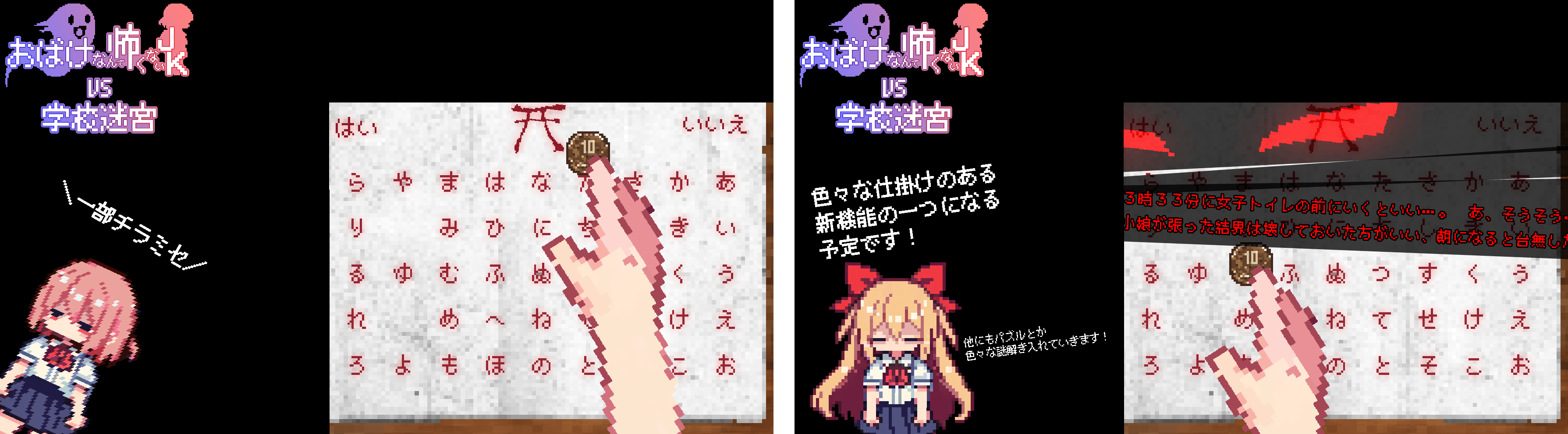 ゲーム中、こっくりさんのような儀式ができないか検討中です。