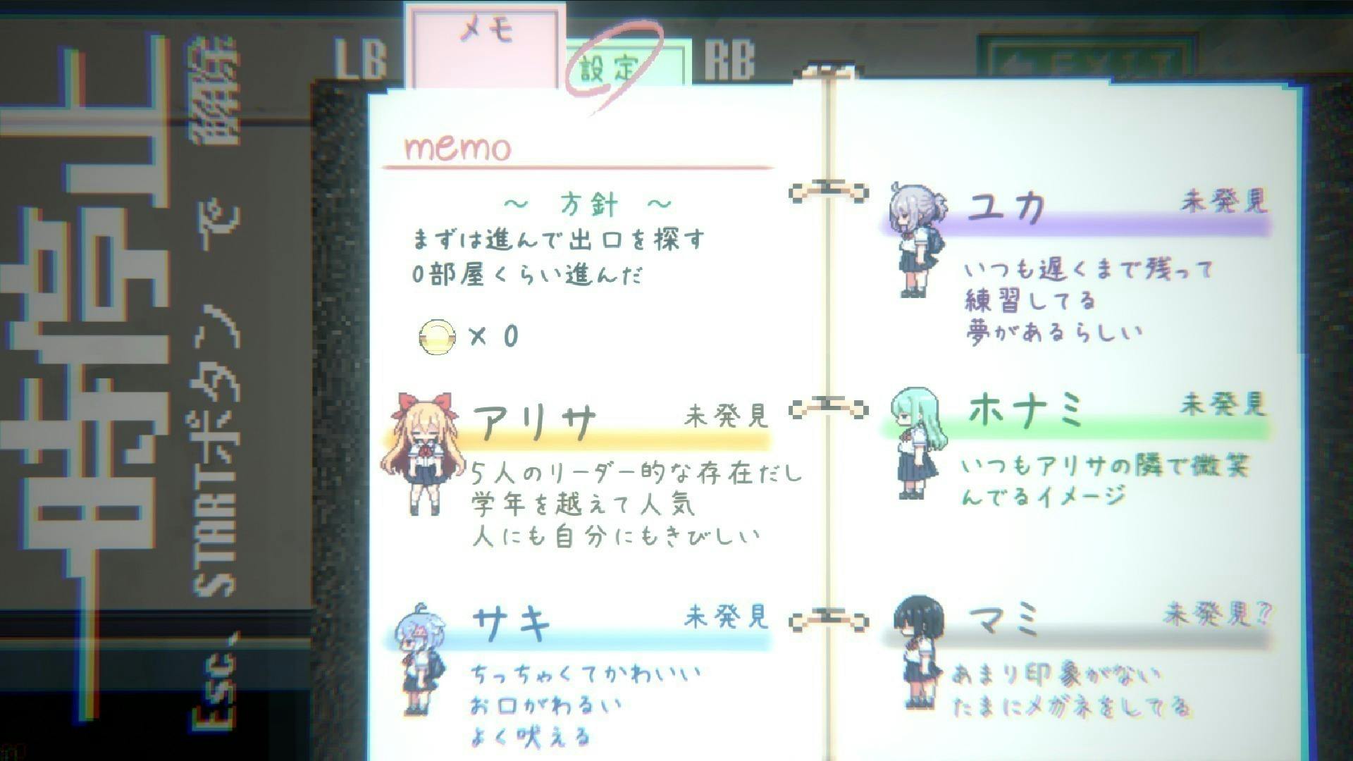 夜の学校を探索し、ロッカーを調べたりクラスメイトと交流し、脱出を目指します。