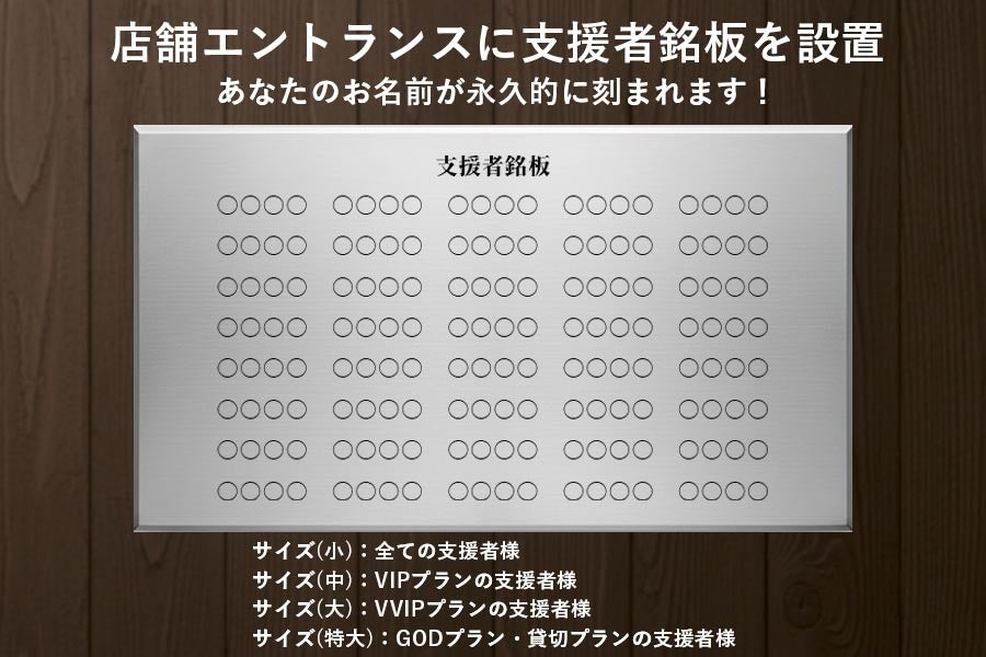 感謝の印として、GOD > VVIP > VIPの順で大きくお名前を記載させていただきます。