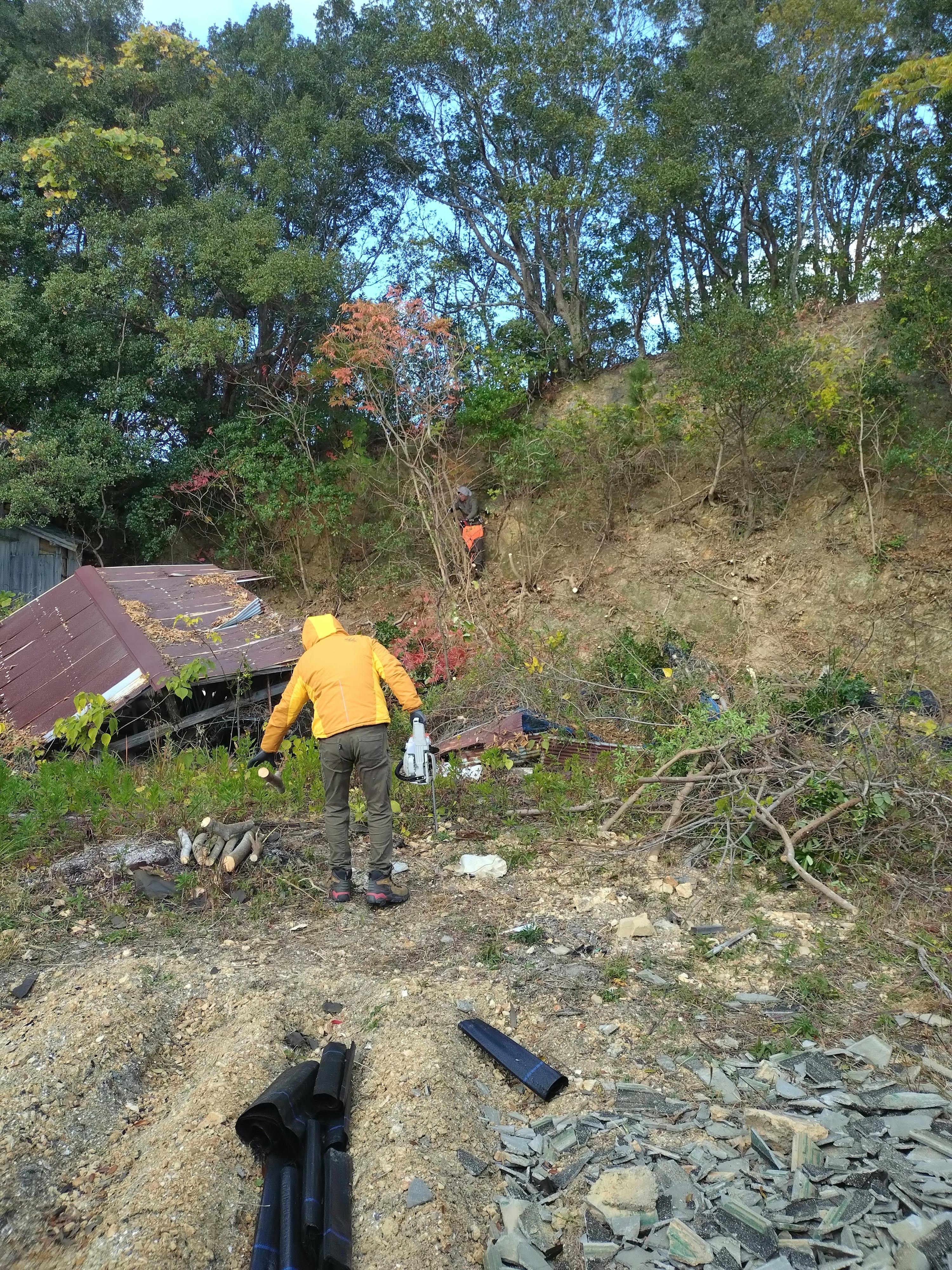 市内のボランティアチームさんとスタッフの協力で、潰れた家屋を撤去してます。