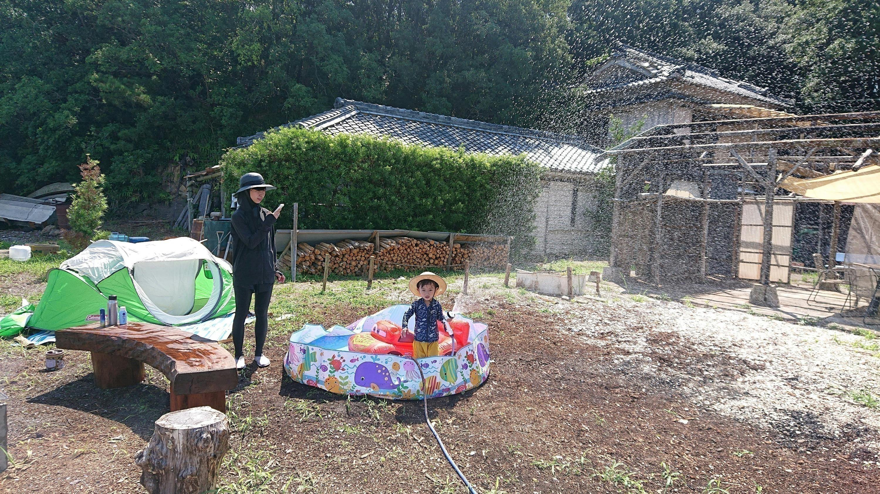 (屋外)イカダの上のキャンプ場/コンポストトイレ(男女別)/シャワー/かまど/炊事場/テラス/桟橋/ファイヤーサークル/鶏小屋/畑/果樹園