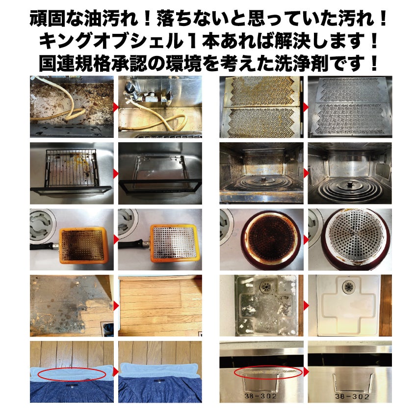 天然素材の食品添加物で出来た頑固な油を落とせる洗浄剤「キングオブシェル」は飲食店や飲食加工工場などで業務用として使用されている国際的に認められた洗浄剤です。
