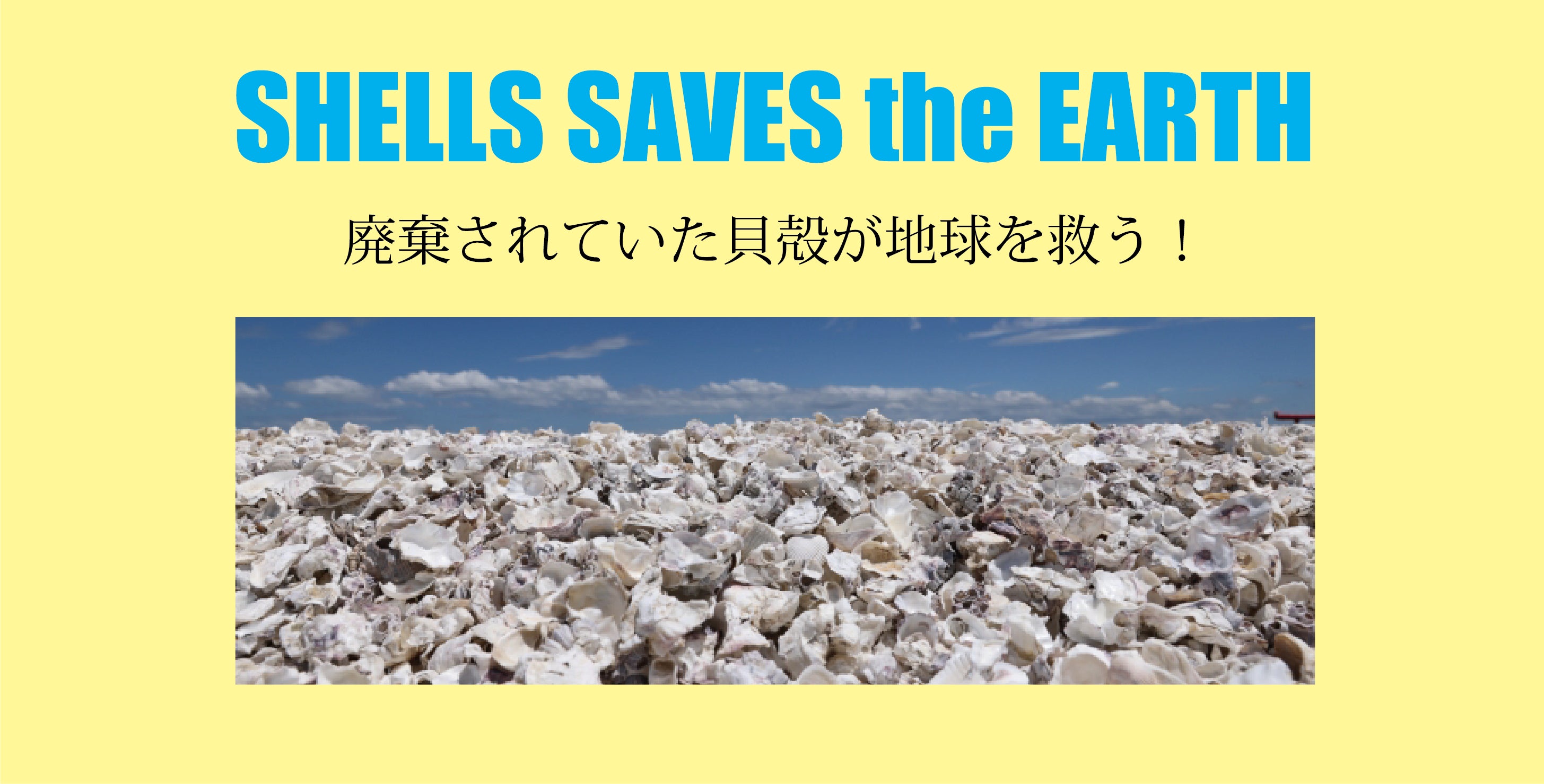 日本国内で年間約40万トン以上の貝殻が、廃棄され環境問題になっています。この廃棄された貝殻を有効利用できれば「廃棄物削減」と「環境負荷低減」を同時に実現可能になります。