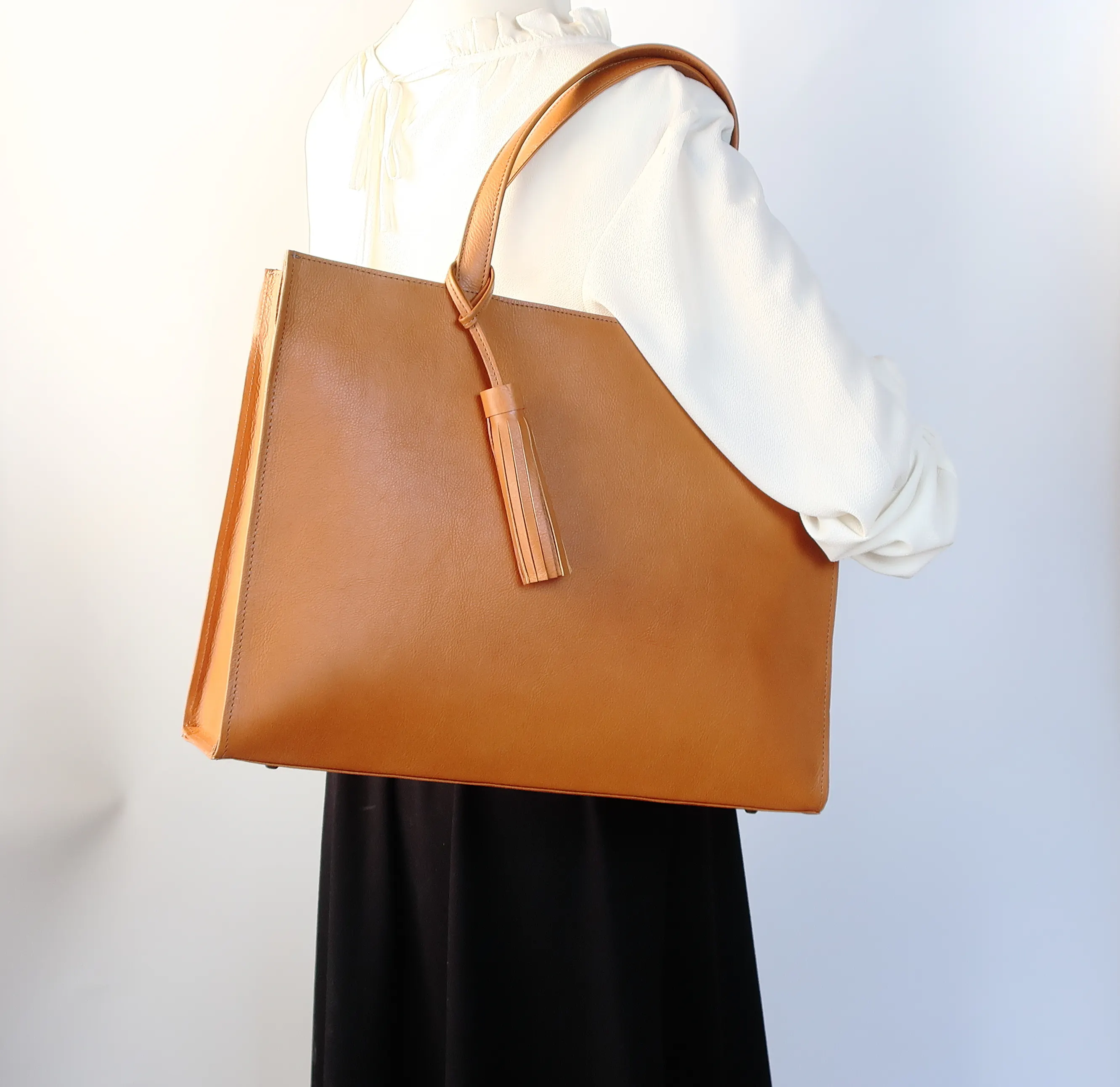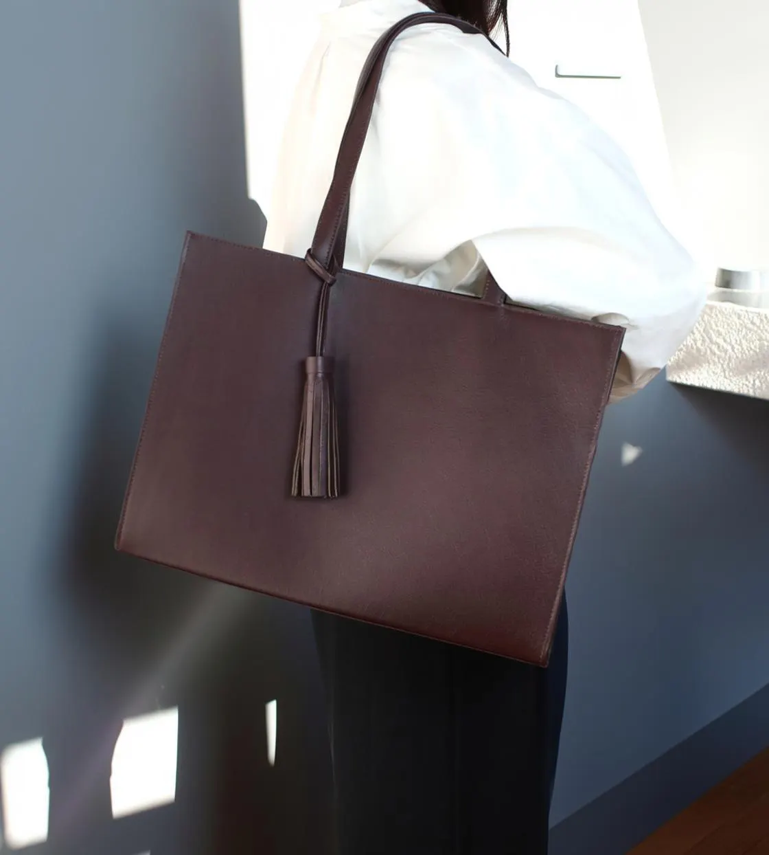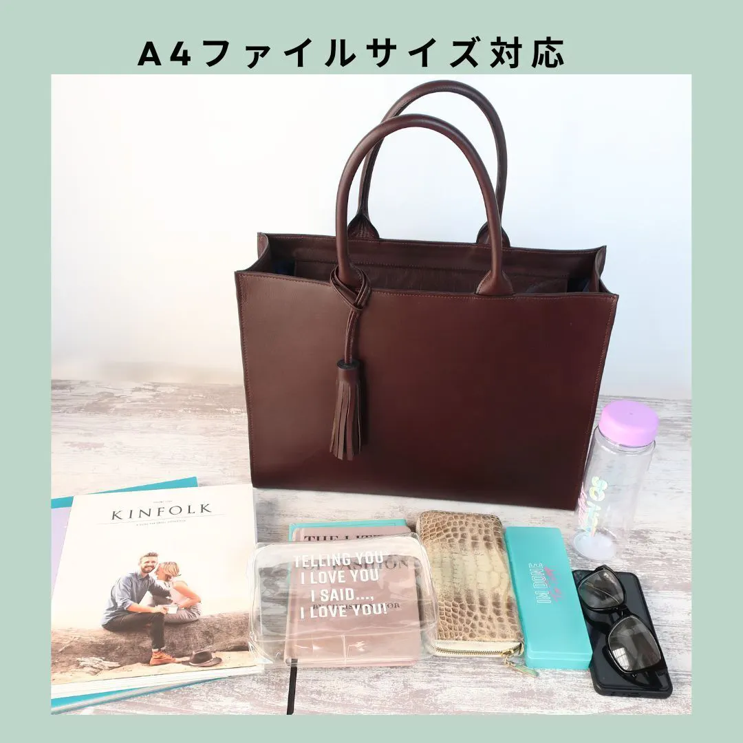 - 【お仕事バッグ】しかくデザインで使いやすい形で上質な本革で仕立てた本格トートバッグ