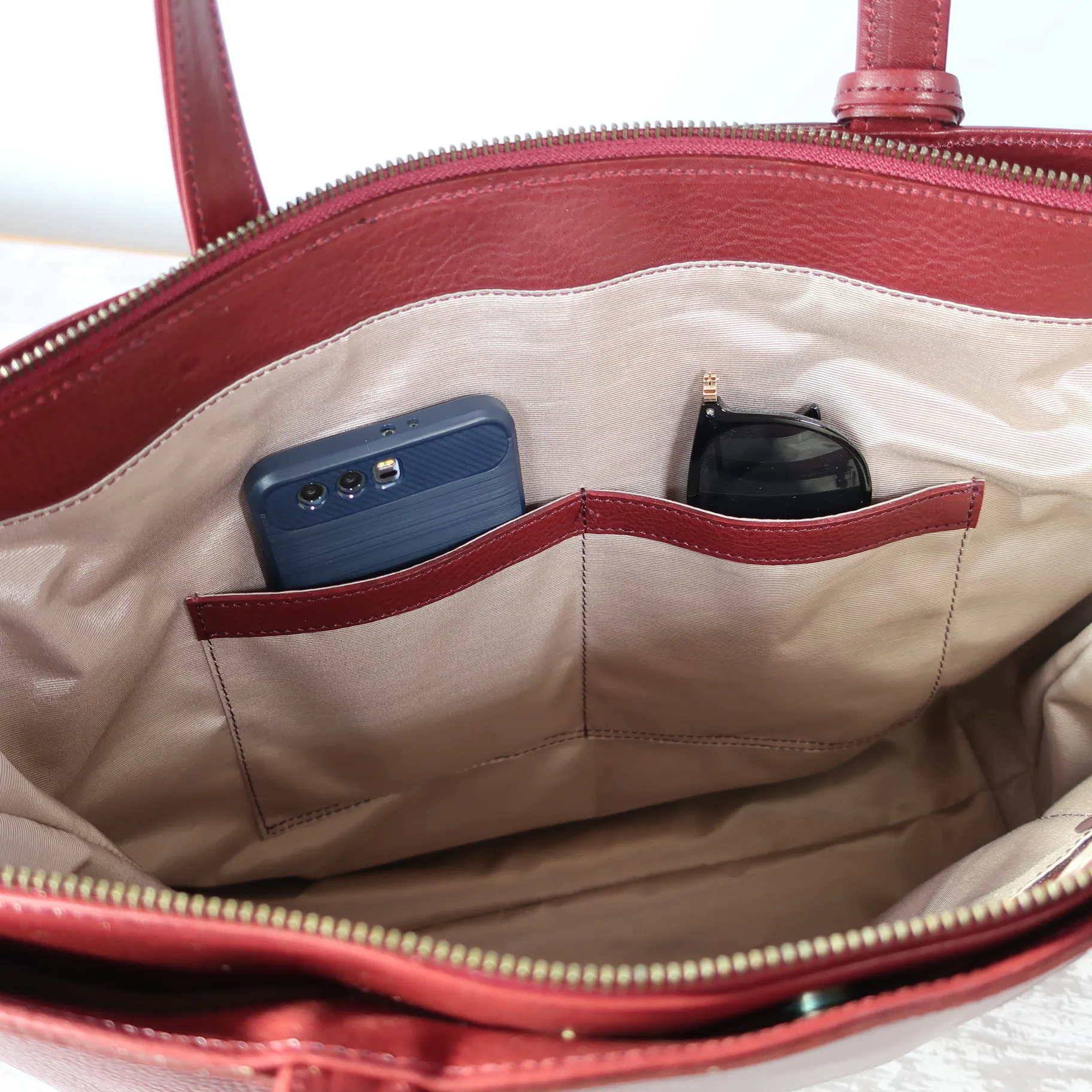 貴重品や小物を収納するのに便利なファスナー付きポケットです。