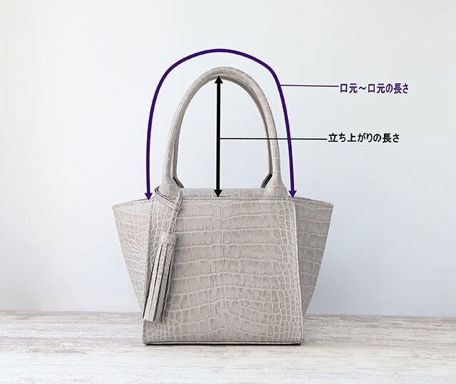 お使いのバッグの手紐の長さを参考にして頂けますと幸いです。
