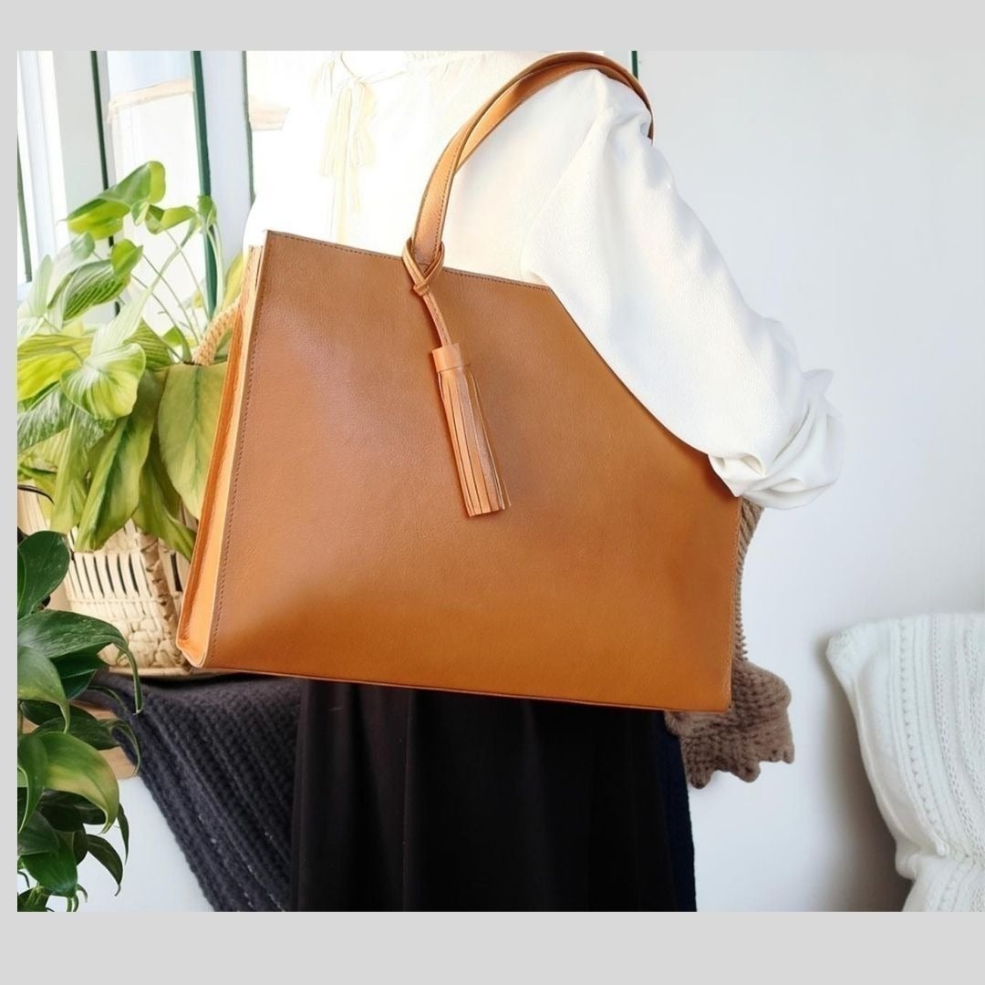 - 【お仕事バッグ】しかくデザインで使いやすい形で上質な本革で仕立てた本格トートバッグ