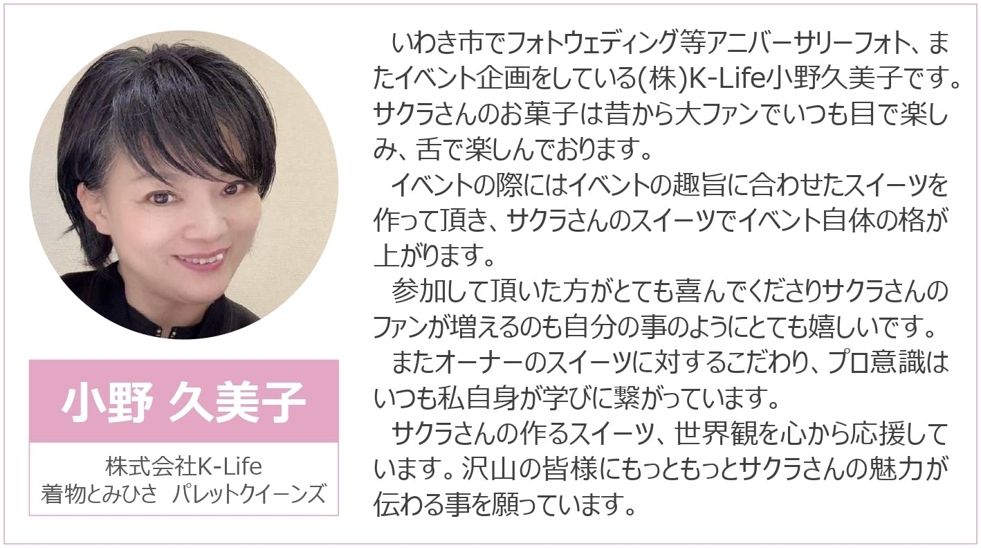 有限会社サクラクリエーションは、福島県いわき市で40年以上にわたり、地域に根ざした洋菓子店として歩んできました。創業のきっかけは1982年、娘の出産を機に始めたお菓子づくりでした。「原材料や産地も厳選した、安心なおやつをつくる」――家事育児をしながらお菓子教室に通い、国内外を問わず勉強を重ね、趣味から始まったお菓子づくりが、やがて飲食店への卸売へと発展し、いわき市平に店舗を開業するまでに成長しました。