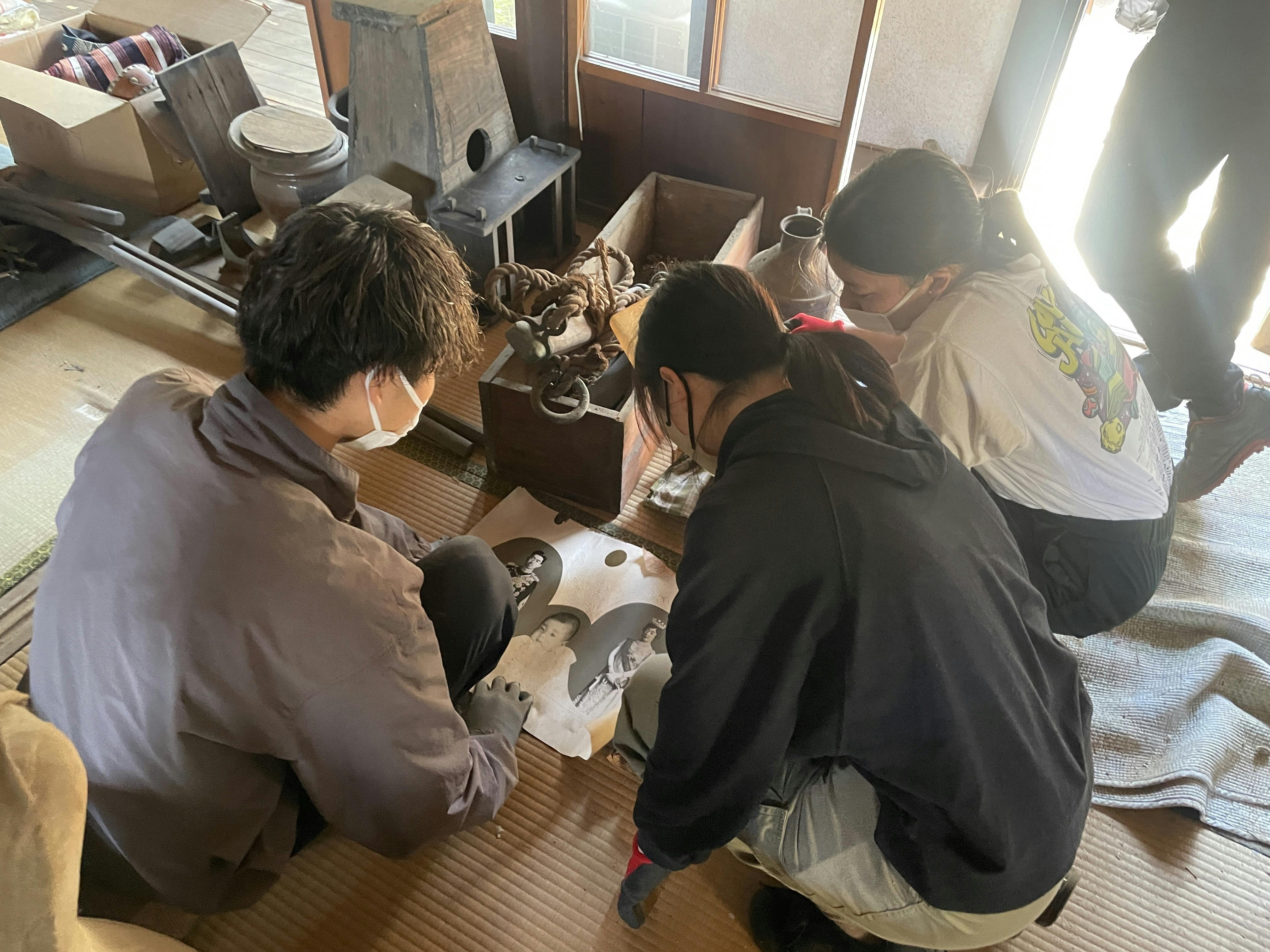 愛媛大学社会共創学部では片岡由香ゼミの学生さんたちが継続的に来島し、まちづくり研究の対象地として住民への聞き取り調査などを行っていただきつつ、リノベ作業にも参加していただいています。また同大の準正課教育部門を手がける仲道雅輝先生のチームも内装の解体や荷物の整理などに参加。皆さんには改修完了後も継続的に上弓削の関係人口創造、まちづくりに関わっていただきたいと考えています。