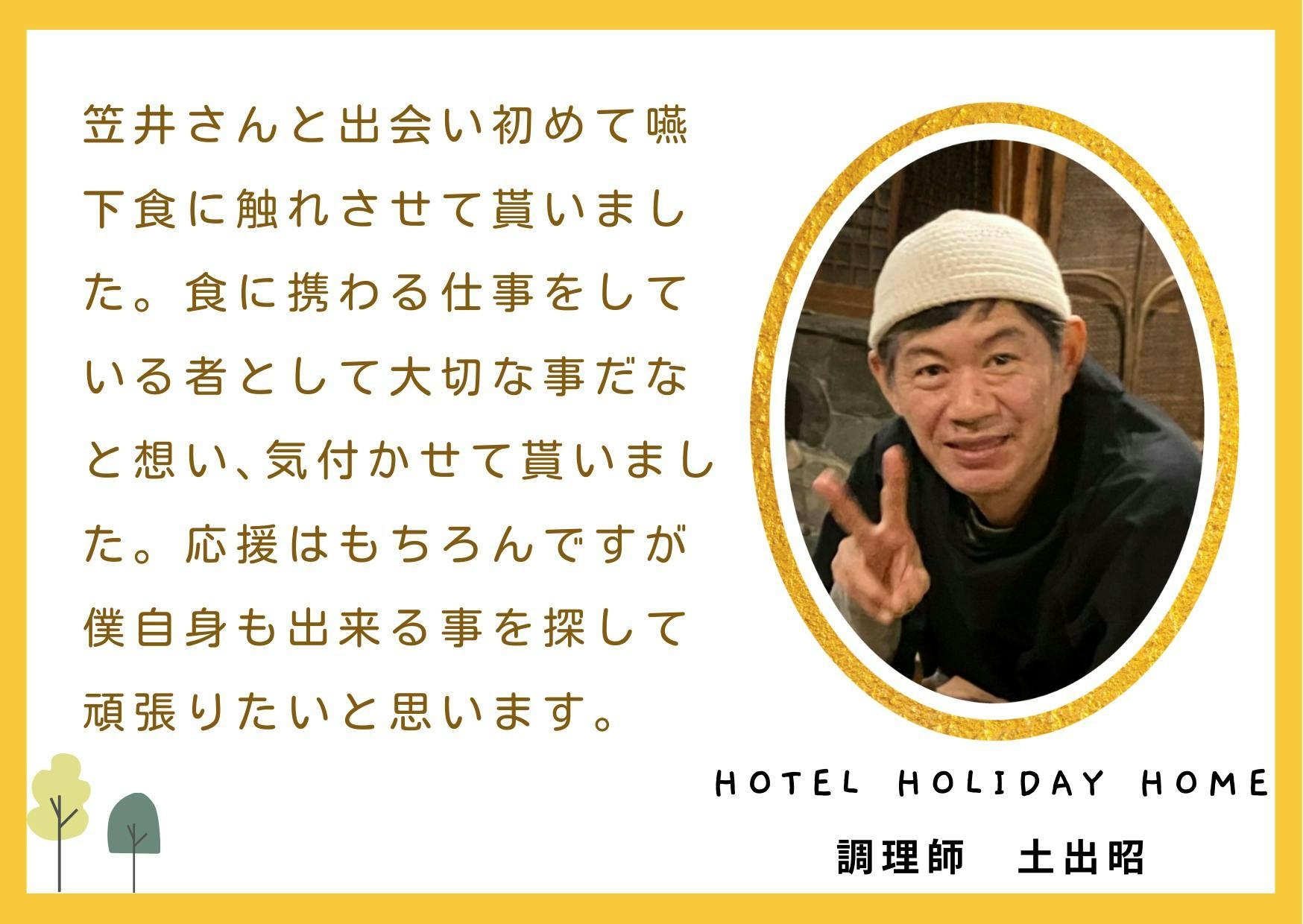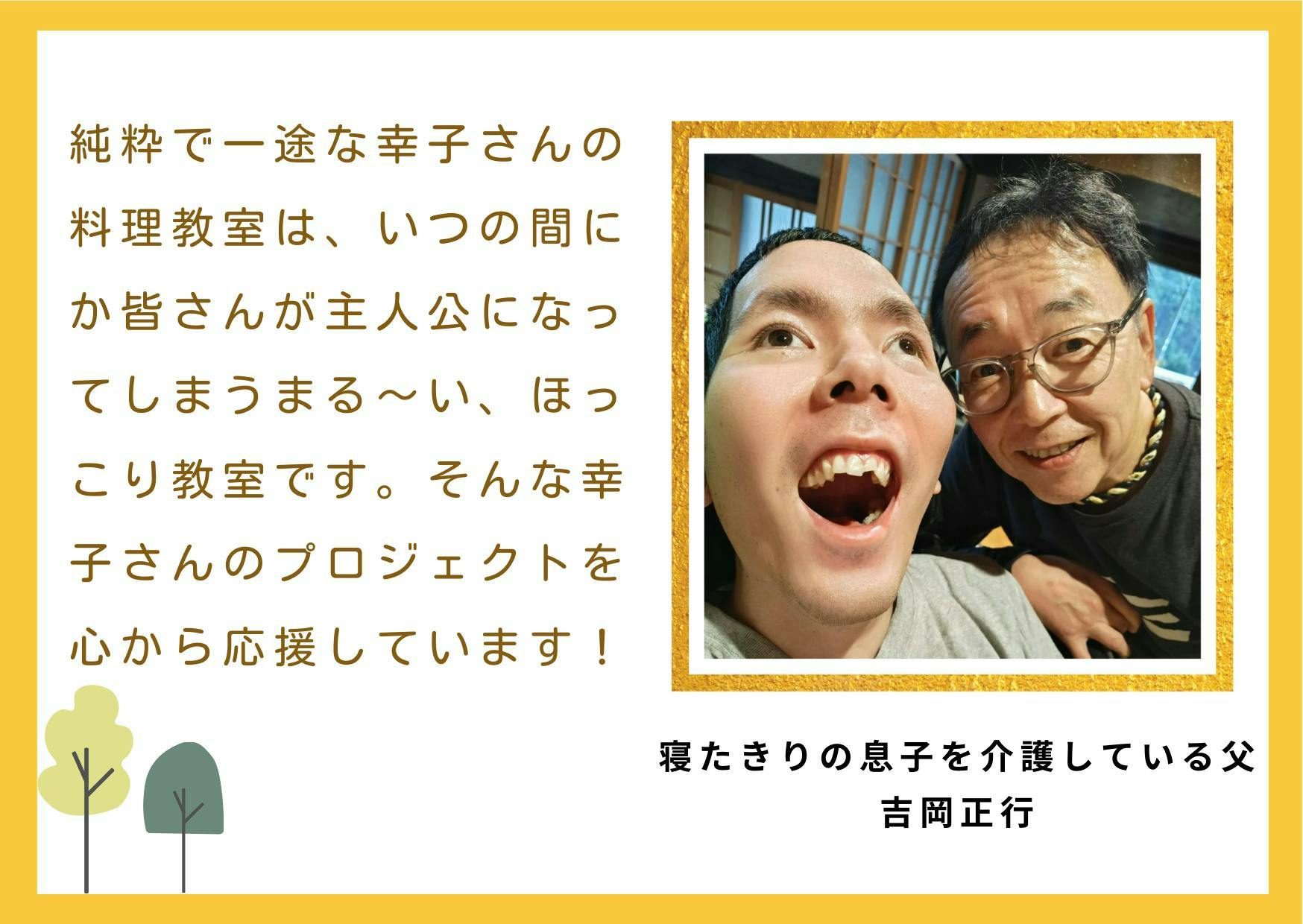 様々な病気や障害を抱えていると、健康な人たちが当たり前に楽しんでいることが難しいと感じる場面があります。私は「食」を通してそんな見えないバリアを取り除き、病気や障害があってもなくても共に食卓を囲み、同じ”美味しい”が分かち合える空間が広がることを願っています。