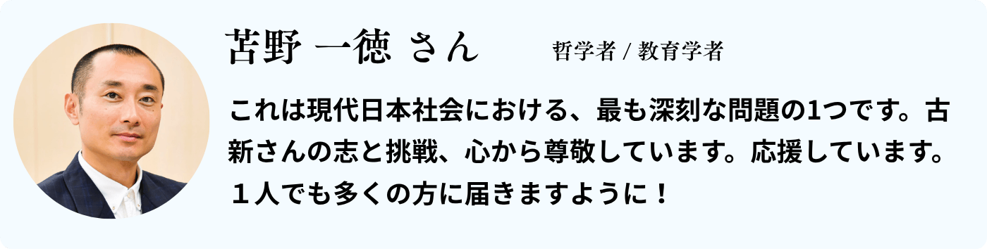 若者と向き合い様々なかたちで手をさしのべる大人たち、そして懸命に未来を切り拓こうとする少年少女たちの物語が、この課題に関わる人みんなの希望となるようにーー。